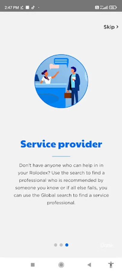 To find a service provider that you need for a specific service you have multiple options. Go to your Rolodex, type in any number of keywords (location, task you are looking for, company name...). You will see the service provider(s) who match those search terms. Don’t have a company in your Rolodex for what you need? Go to the search tab. There you can search for what you need based on who is recommended by your user connections. Still out of luck? Go to the global search feature. This will search the database of all companies that meet your needs.