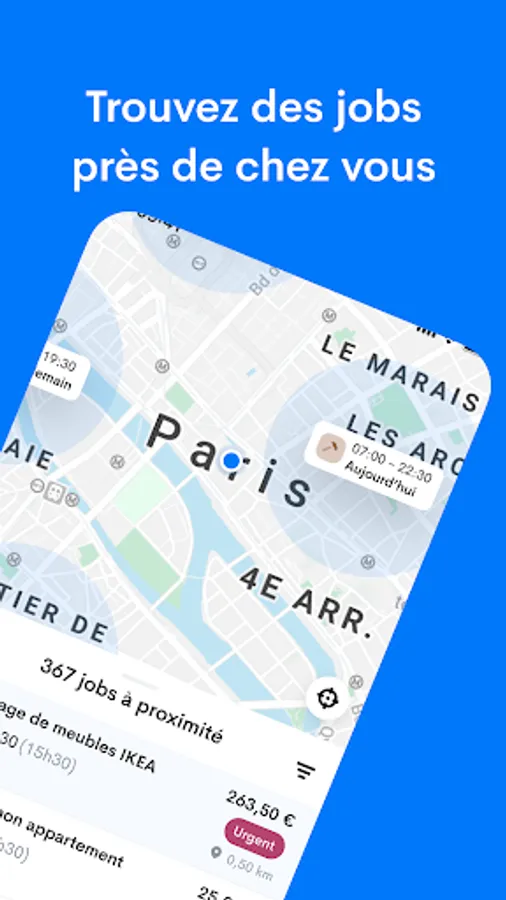 Increase your income easily by doing jobs near you. The interactive Joblist locates you in real time and offers you the most relevant jobs.