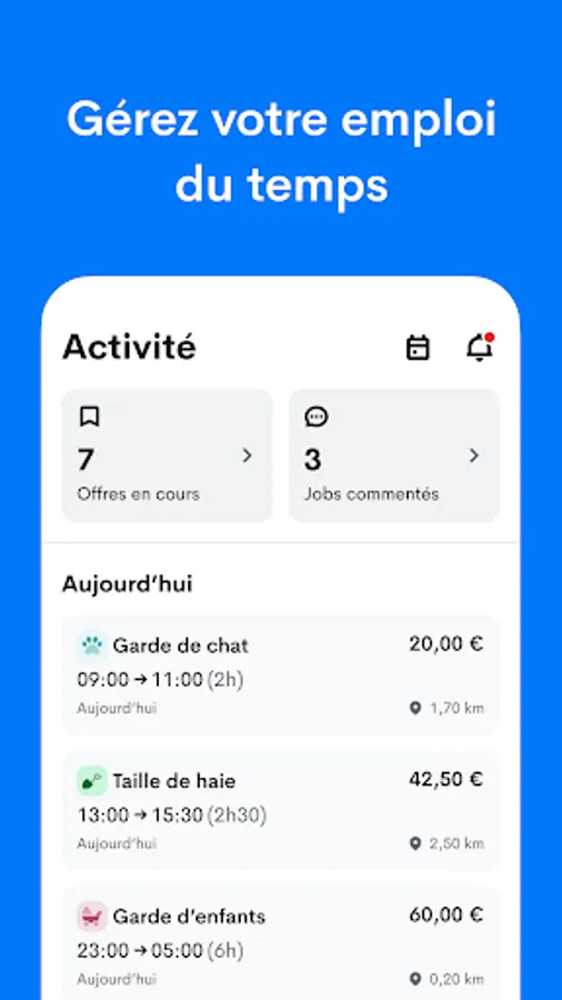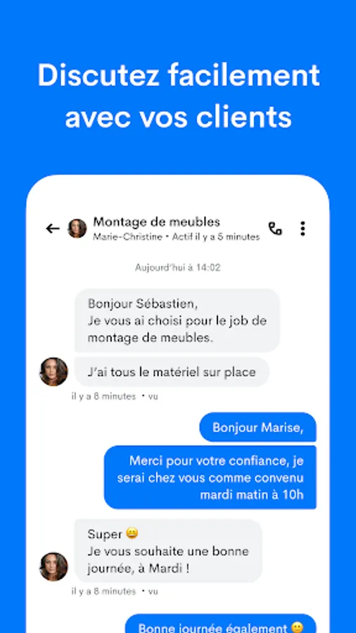 Chat in real time with your customers to better organize your jobs and benefit from the intelligent agenda that allows you to manage your schedule.