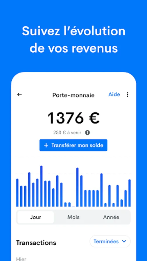 Follow the evolution of your income thanks to your integrated wallet and manage your payments and deposits easily.