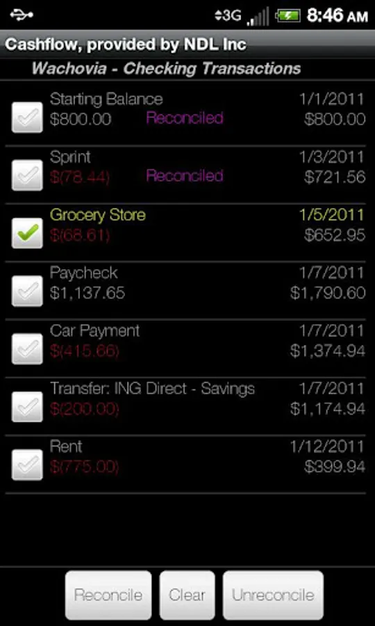 Cashflow is an easy to use basic checkbook register. Using this application as a personal account ledger will allow users to track running, ending, and current balances for multiple accounts. This is a very useful tool for users that wish to project their cash flow by entering future transactions into their register.