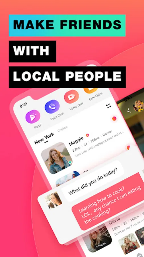 Recommend people nearby on the homepage with clear profiles, which helps you to make friends more quickly without the distance limitation!