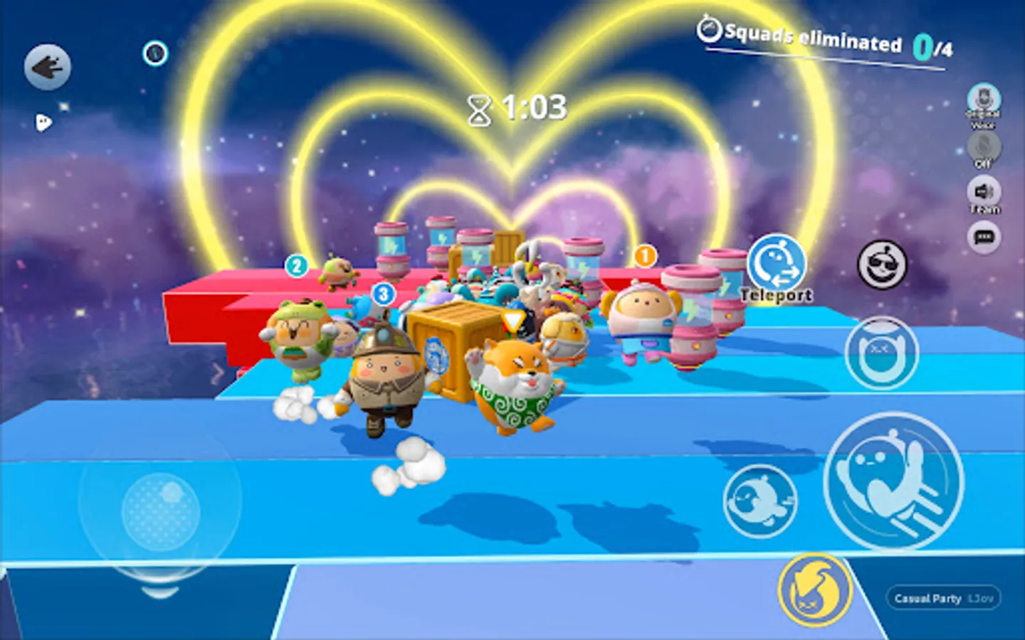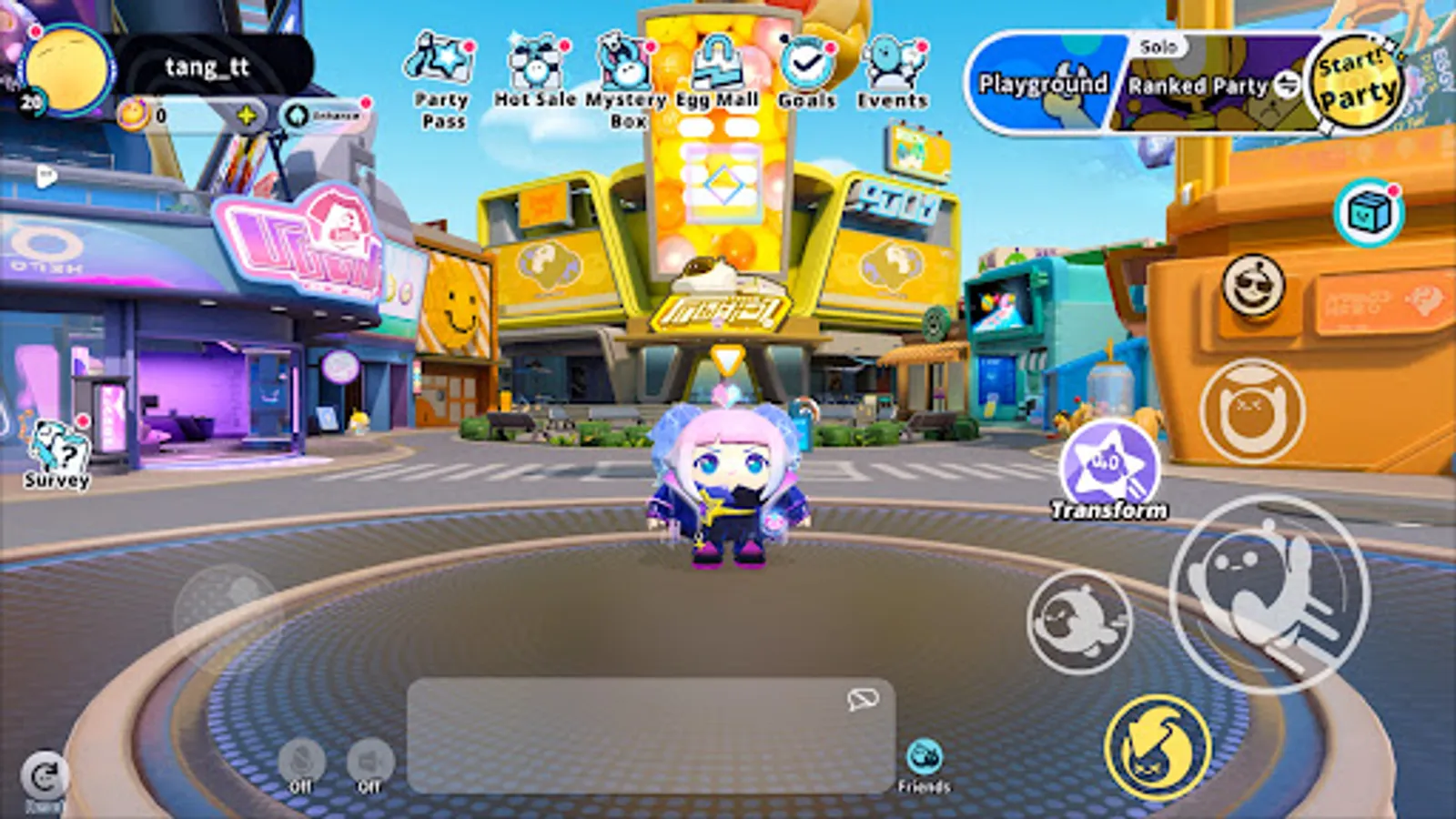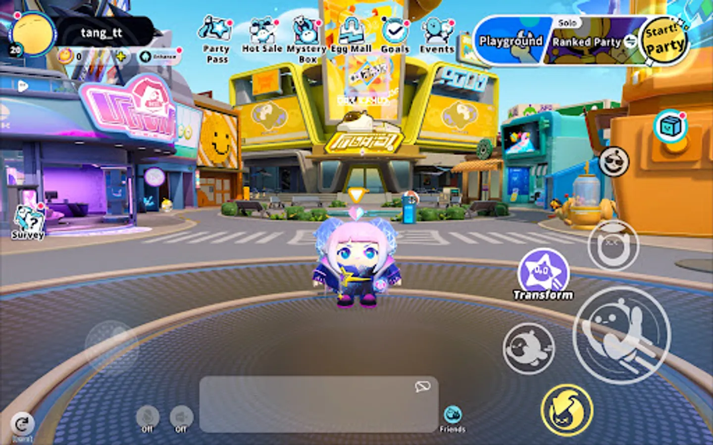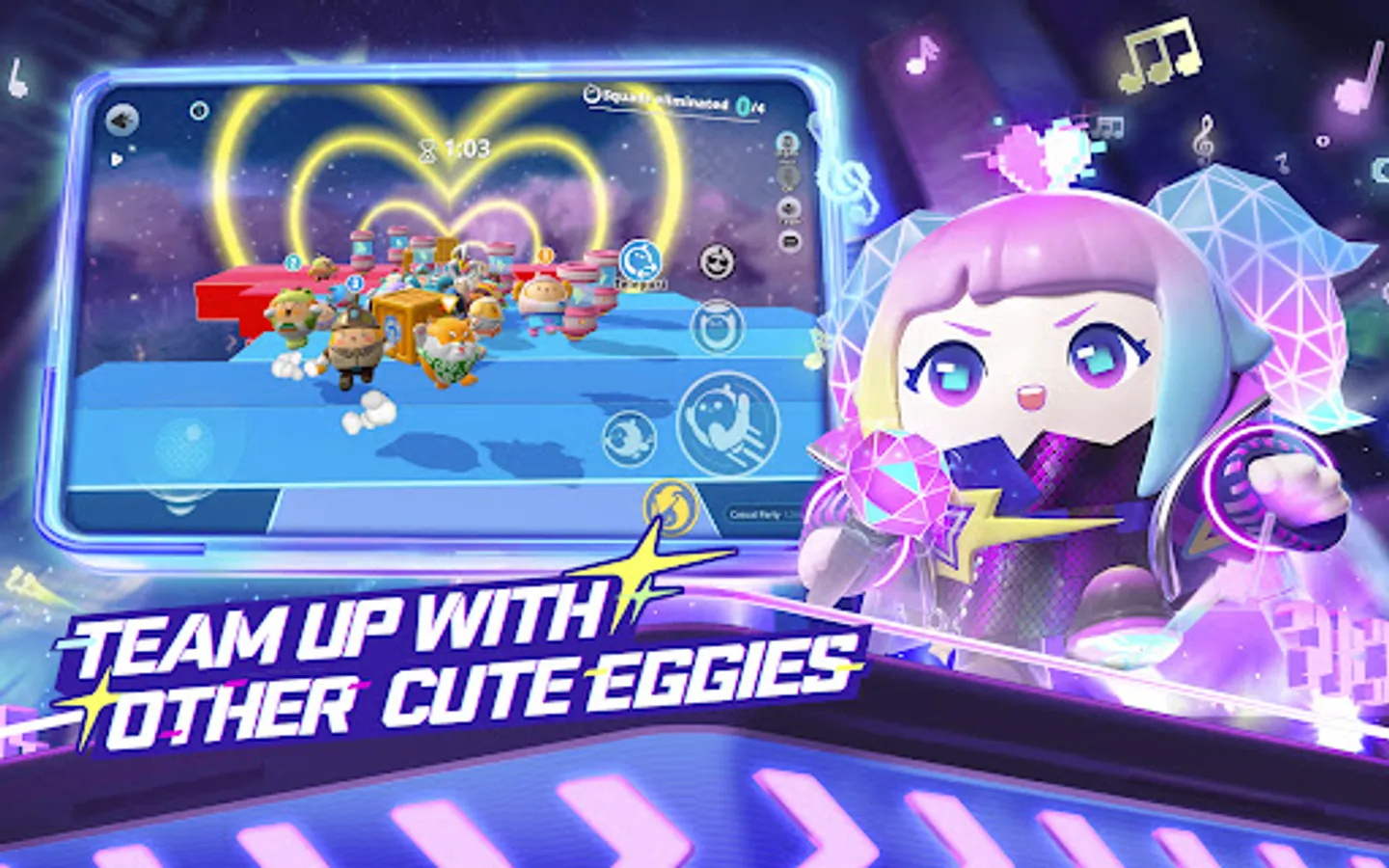 Join the different parties, bump and hug with friends in game! Be careful with the obstacles and avoid other Eggies! Enjoy the party with your friends and go play all night!