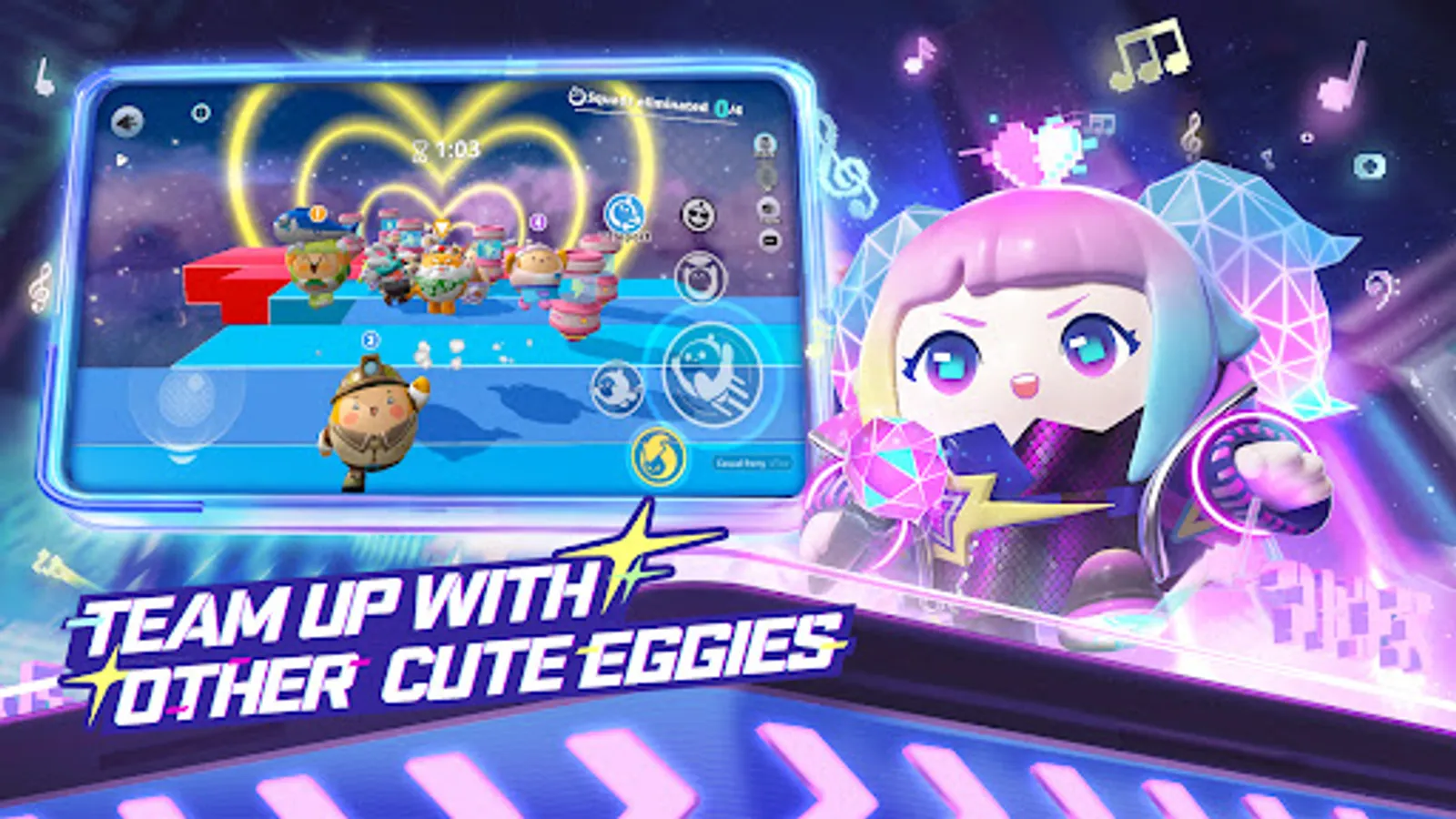 Team up with cute Eggies in different styles; fluffy, fantasy, sweet...choose the style that suits you! Power through obstacles together with your Eggy friends, it’s time to have fun now!