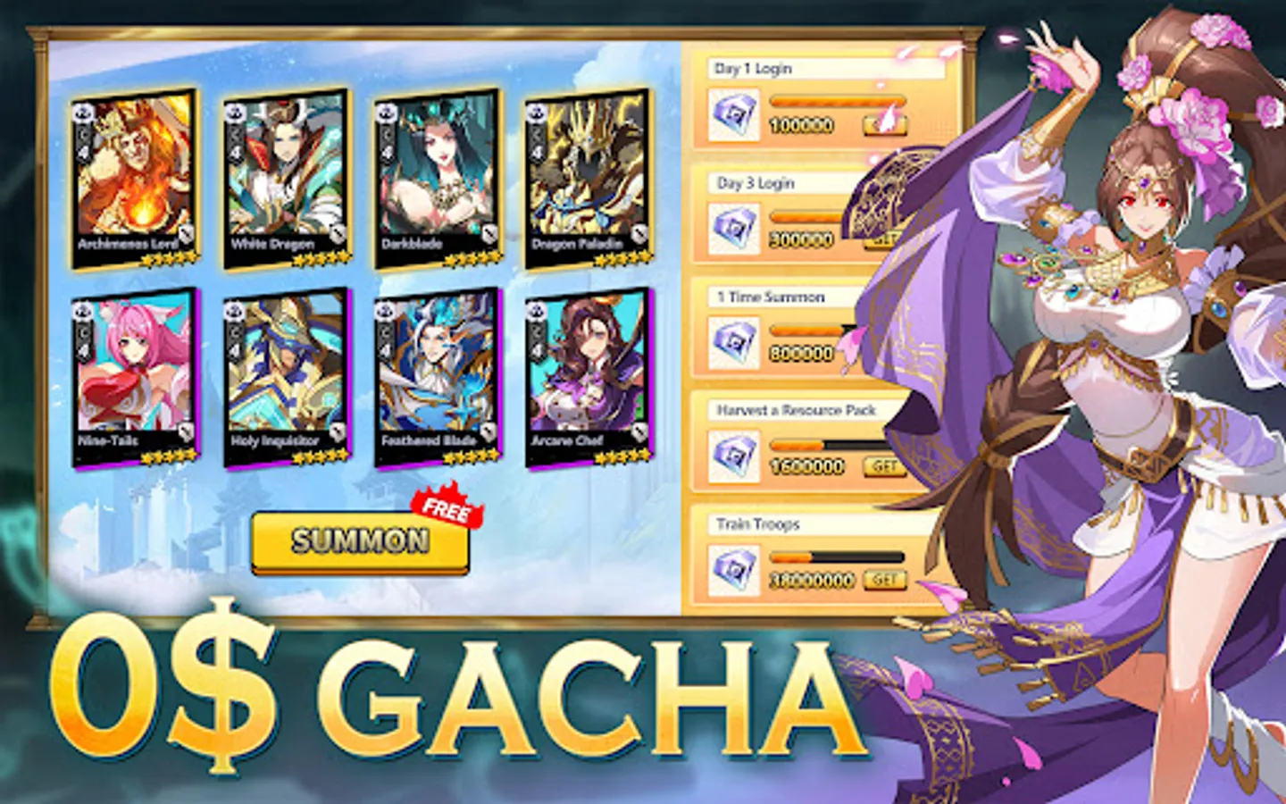 Heroes of seven different races, each with unique skills and talents. Recruit heroes to expand your territory and build your fame. Break the seal of the ancient gods and enter the gate of endless wealth.