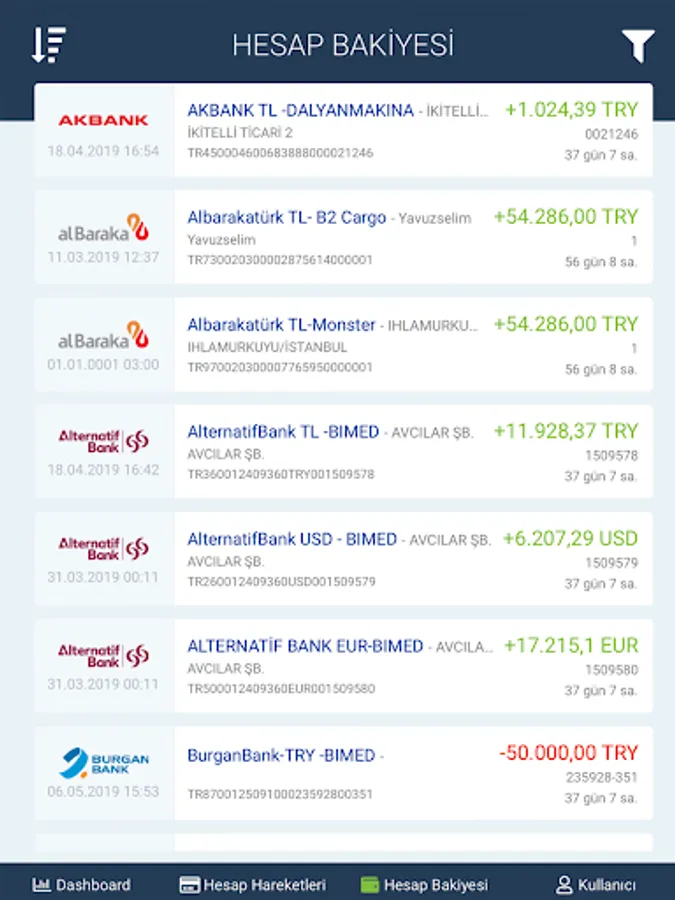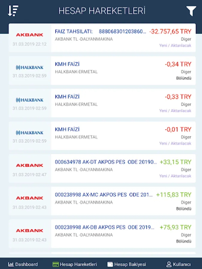 Netekstre takes all your account transactions online from banks and allows you to view all movements on a single panel. All the movements are translated into a common data structure and transferred to the ERP systems (SAP, Oracle, Microsoft Dynamics, Logo, Netsis, Micro, Eta etc.) via web service.