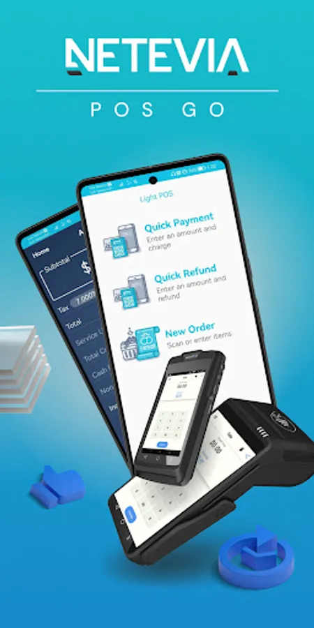 Netevia POS GO Free Mobile Point-of-Sale app packs all necessary functionality in a neat and user-friendly interface. Let your business seamlessly and securely accept debit and credit cards.