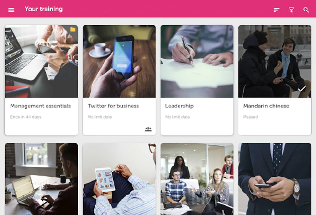 Learn anytime, anywhere! Thanks to learningCloud app version you can access all your company training from your smartphone or tablet. Download content to your device and train yourself, even without an Internet connection.