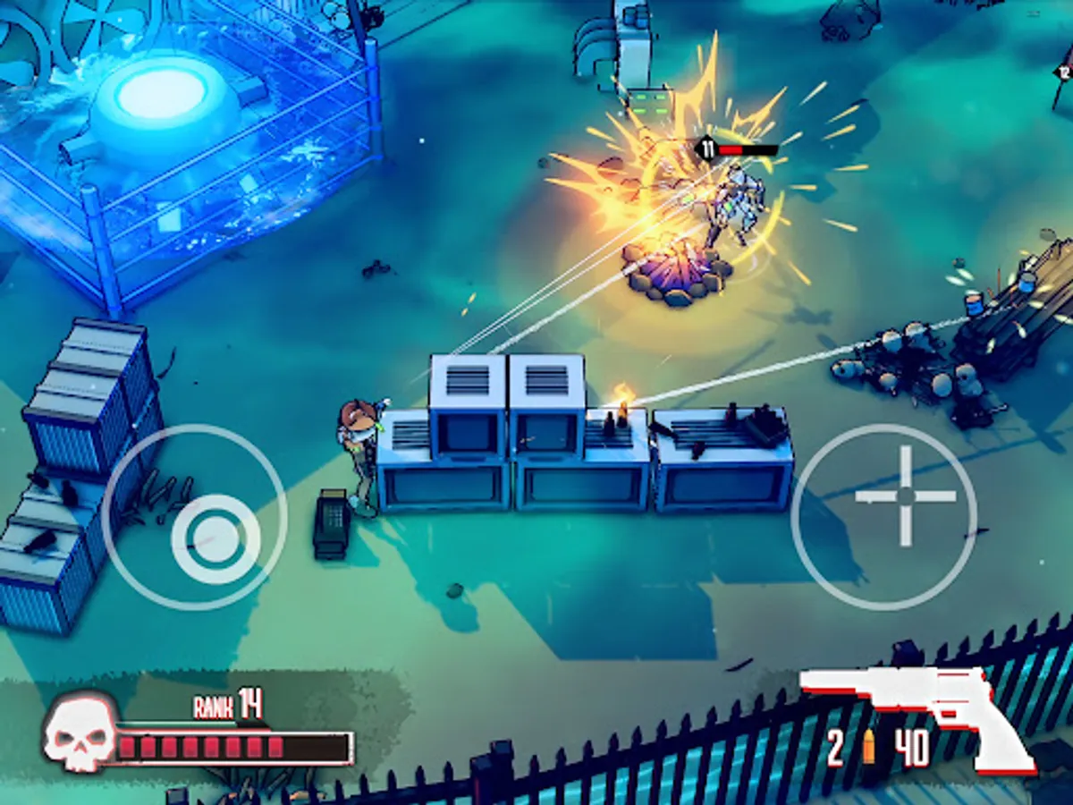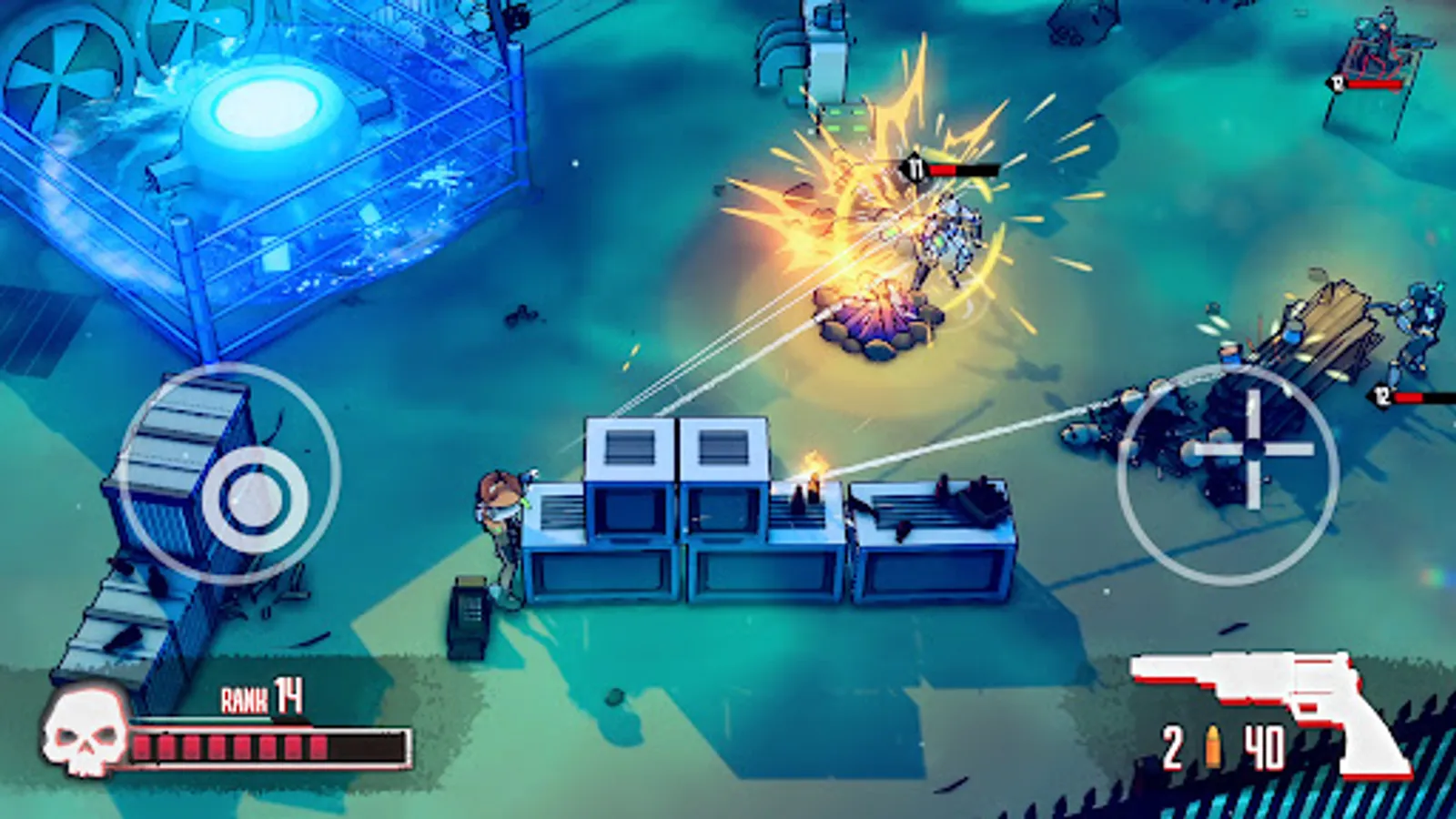• Shoot, kill, reload, repeat. Enjoy twin-stick action in this shoot 'em up where players spawn at home base, gear-up, upgrade and then pick a mission to fight.