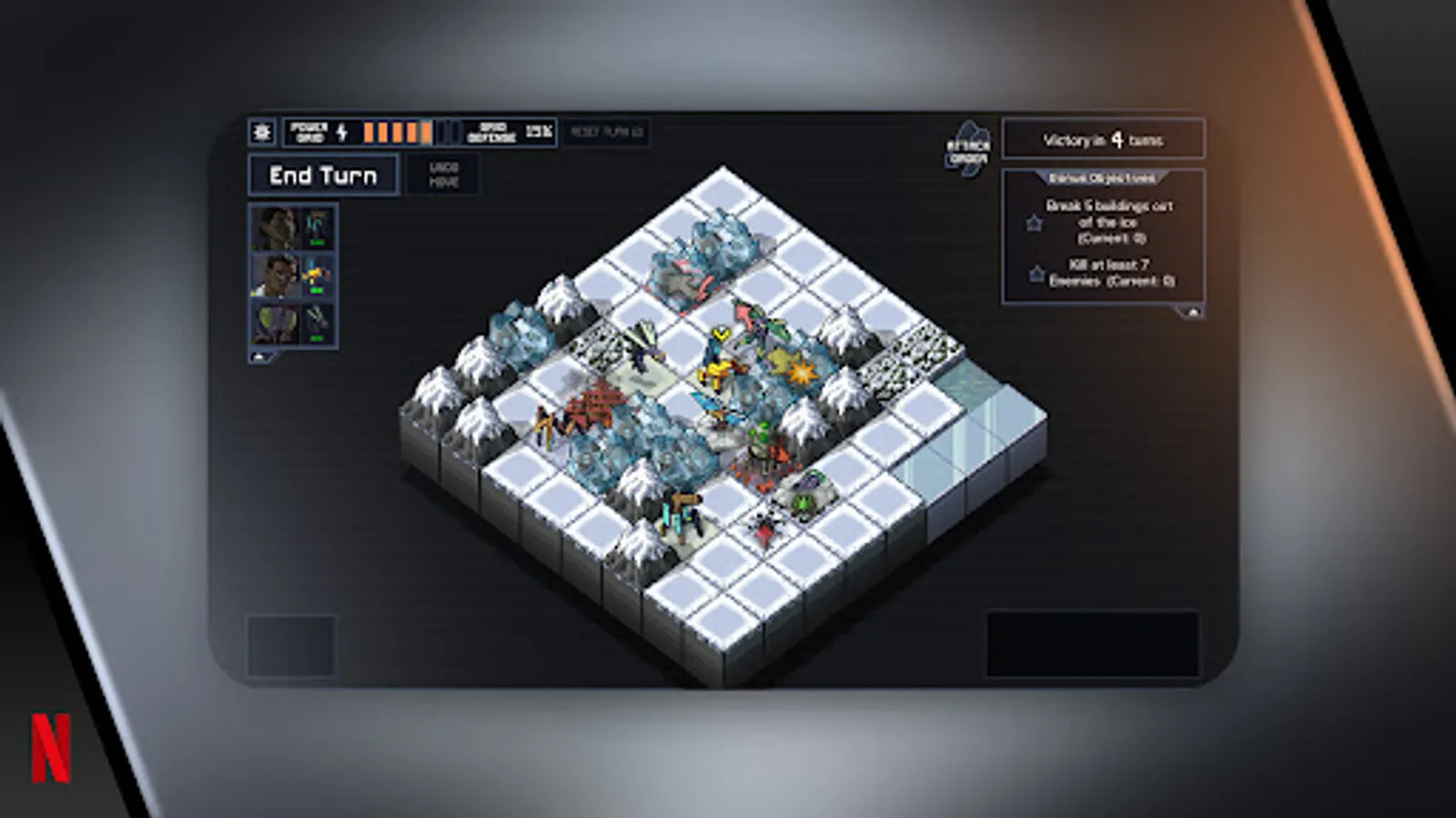 • Defend cities: Civilian buildings power your mechs. Defend the structures from the enemy and watch your fire!