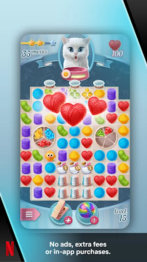 * Complete match-3 puzzles and unleash fur-tastic boosts to get high scores and collect bundles of yarn.