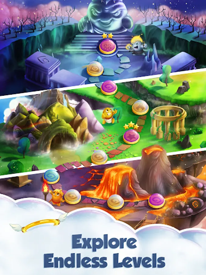 • Check in daily to earn legendary rewards! As you free the gods, they will grant you new boosts and treasures to help you along your journey. Earn the Hammer from the Life God, the Trident from the Water God and more.