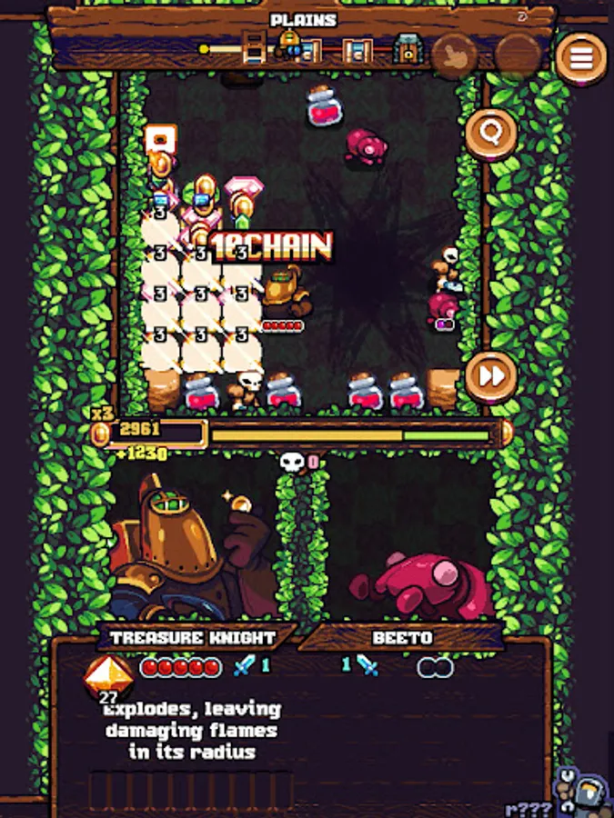 • Bump into enemies to battle them and trade damage in a unique, hybrid combat system. Group enemies together for massive chain attacks while grabbing keys, power-ups and potions to refill your health!