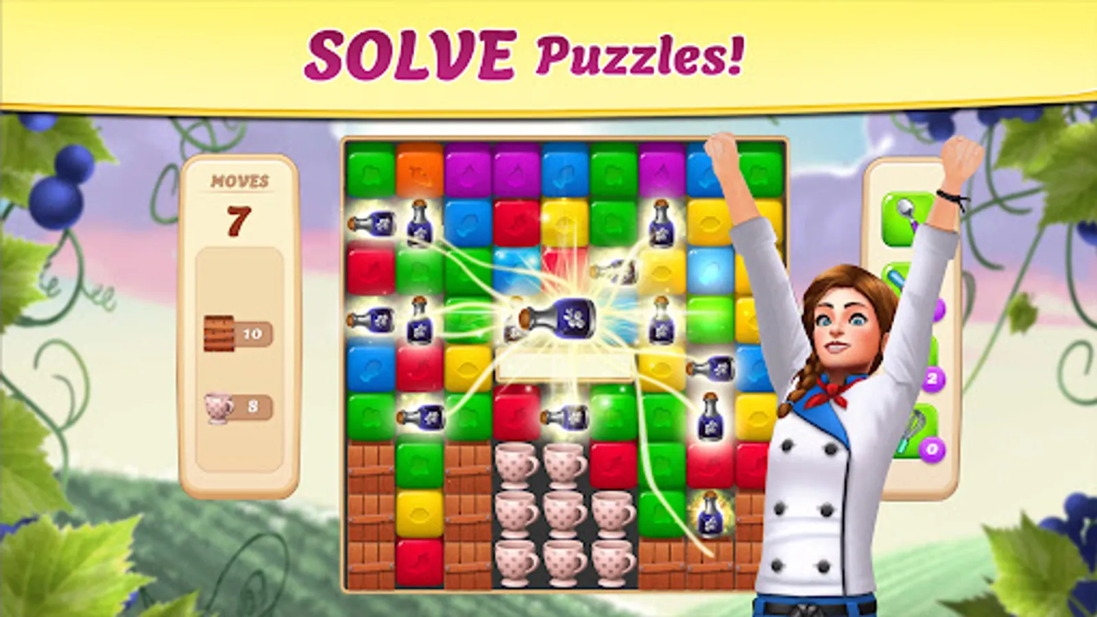 Nestled in the hills of Vineyard Valley is a rustic resort called the Tangled Vines — it's definitely seen better days. Transform and upgrade the vineyard back into a vibrant, swoon-worthy destination alongside a charming cast of characters in this builder. Get ready for barrels full of mystery, drama and romance along the way!