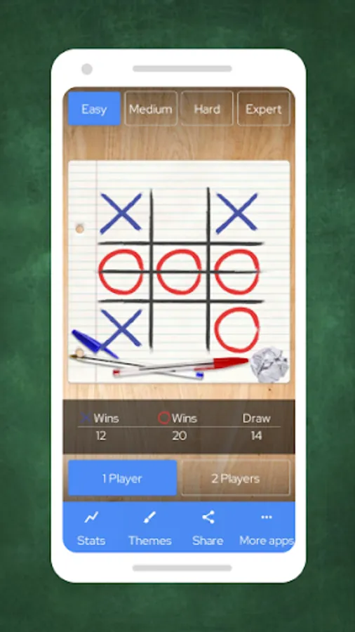 This Android game is a mobile and tablet version of one of the oldest and most famous classic strategy games. Tic tac toe originates from a game called Terni Lapilli that was played in the time of the Roman Empire, now days it is played all over the world and also known as Noughts and Crosses or Xs and Os. The different names of the game originate from a more recent time; the first written text that refers to the name "Noughts and Crosses" appeared in the year 1864 and the name "Tick Tack Toe" twenty years later. This is a simple game that usually is played with a pencil on paper, but there are also many options to play tic tac toe online today.