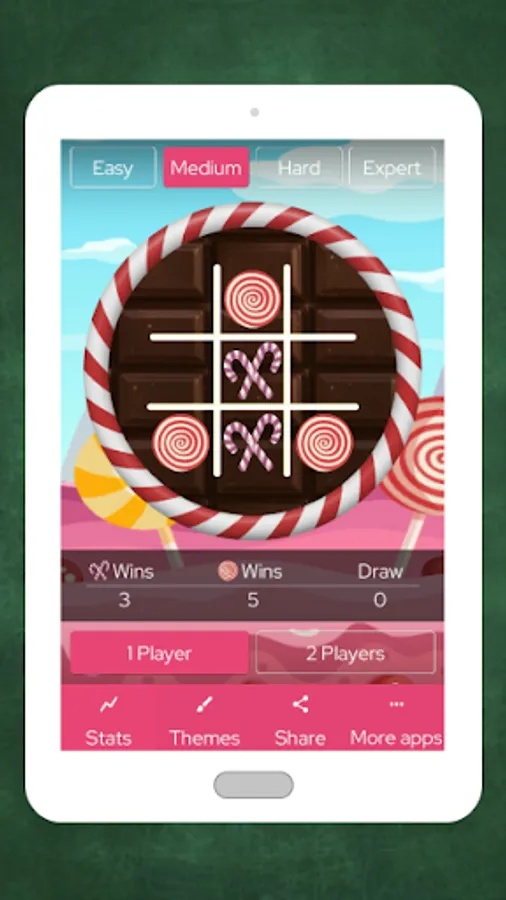 • 1 Player against Android or 2 Player (tic tac toe multiplayer) with same device