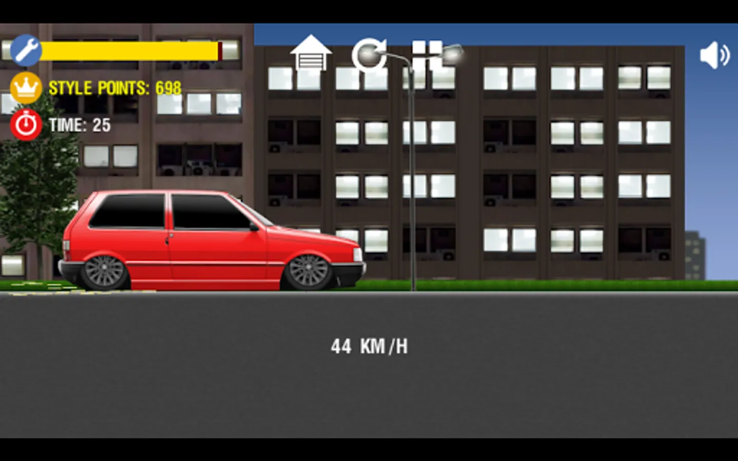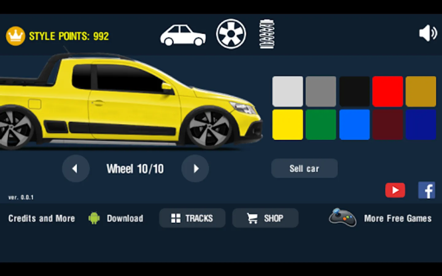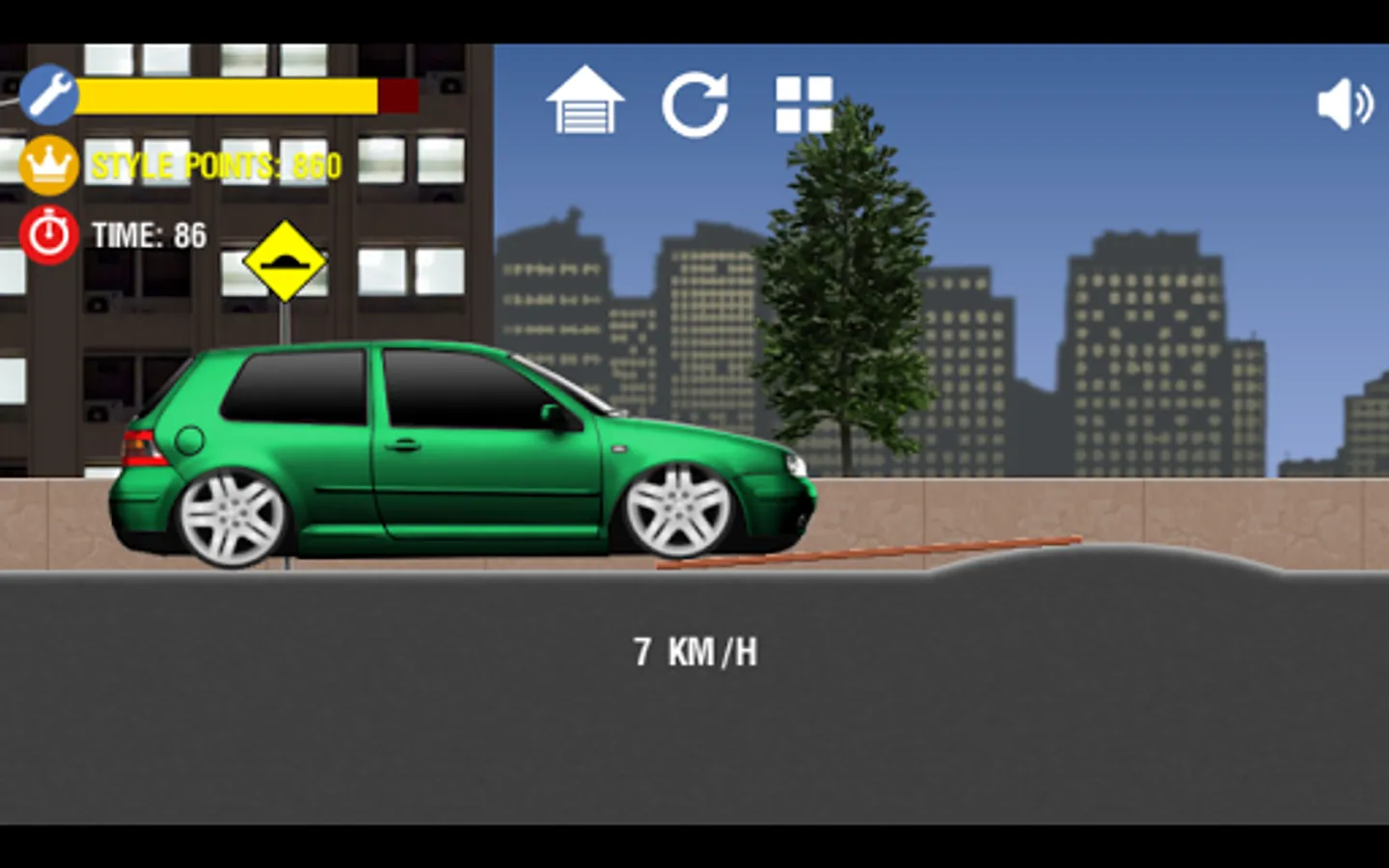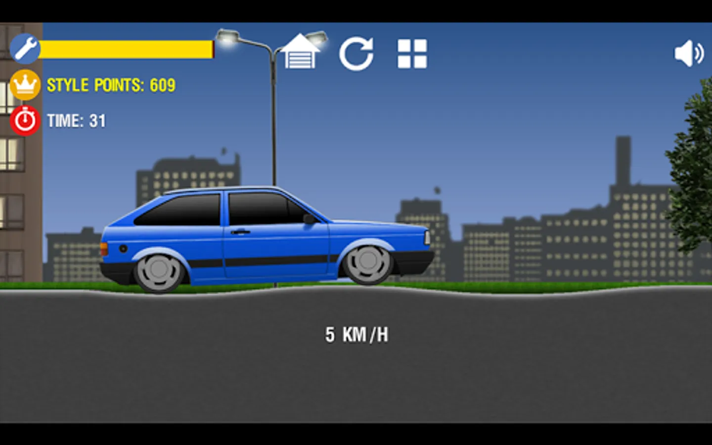This is a 2D physics game inspired by famous cars like Civic, Golf, Camaro, Opala, Gol, Voyage, Saveiro and Uno Mille. You can buy cars, wheels, adjust suspension and run in different levels.