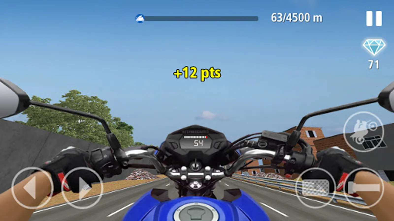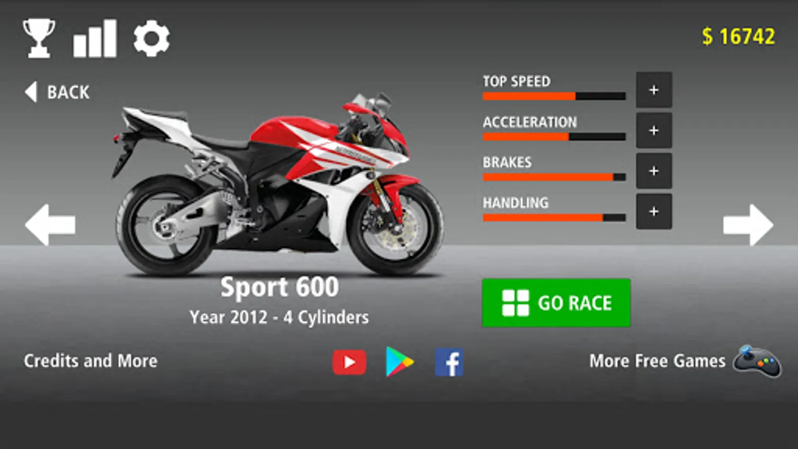 Enter in a bike racing through roads with high traffic. There are bikes from 110 to 2300 cc, with realistic engine sounds.