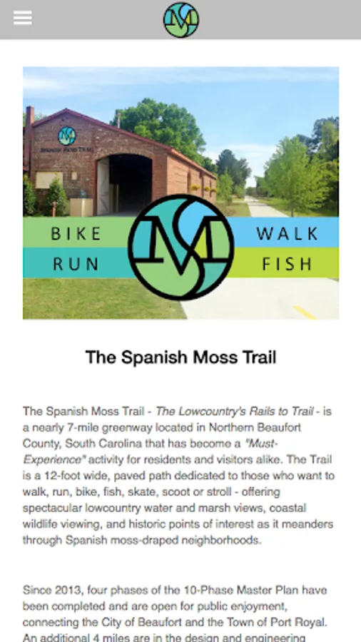 The Spanish Moss Trail ‒ The Lowcountry's Rails-to-Trail ‒ is a greenway located in Northern Beaufort County, South Carolina that has become a "Must-Experience" activity for residents and visitors alike. The Trail is a 12-foot wide, paved path dedicated to those who want to walk, run, bike, fish, skate, scoot or stroll ‒ offering spectacular Lowcountry water and marsh views, coastal wildlife viewing, and historic points of interest as it meanders through Spanish moss-draped neighborhoods.
