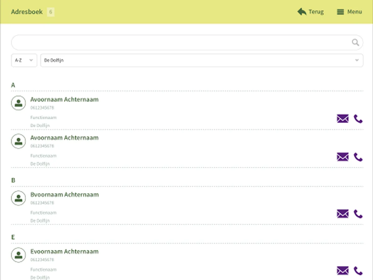 App for staff Aloysius Foundation. A platform to quickly share information with each other and see in details. News, calendar and address book always at hand. Information from your own location or the entire organization with its 1,200 employees.