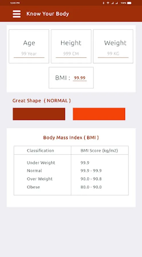 NG BMI calculator is a very easy way to let you know about your health. You just need to put the AGE, HEIGHT and your WEIGHT and this wonderful app will give you a value of your current BMI.
