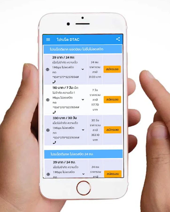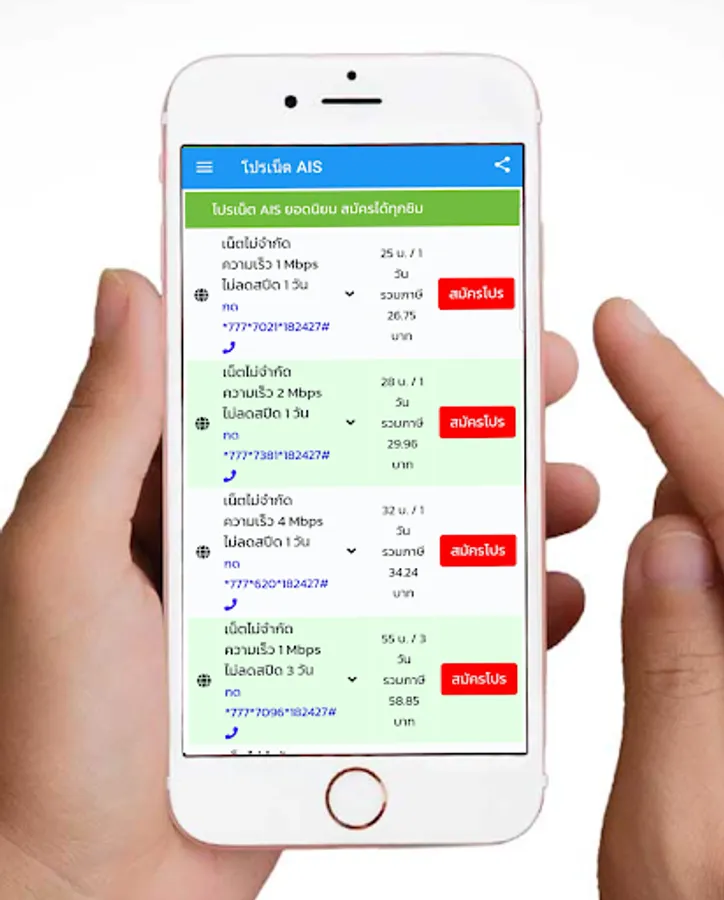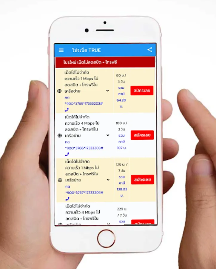 Pro Net is an app that compiles pro for Apply for the internet for both AIS, TrueMove H, and DTAC prepaid, we include additional packages for users to choose according to their lifestyle. Watching movies, listening to music, playing games Apply for various internet easily without having to press the code or remember the application code anytime, anywhere without having to connect to the internet. Our application contains many popular internet promotion and new promotion, whether it be