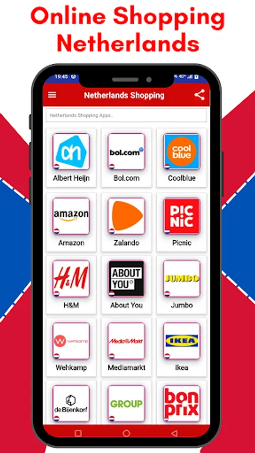 Netherlands Online Shopping App - Online Stores Netherlands : Saves user's mobile memory. The ideal method for having simple access to all of your preferred Netherlands Online Shopping websites in one location.