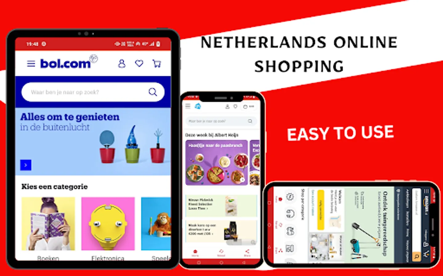 Online Shopping Netherlands - Netherlands Online Shopping App includes all of the leading Online Shopping in the country, best Netherlands Shopping App including Albert Heijn, Amazon, Bol.com, Coolblue, Wehkamp, Mediamarkt, Picnic, and much more etc.