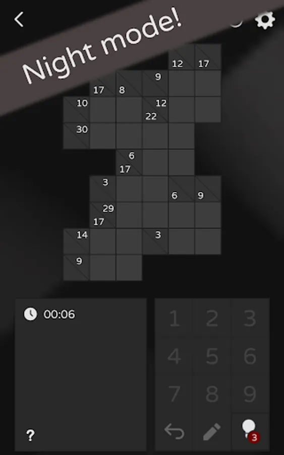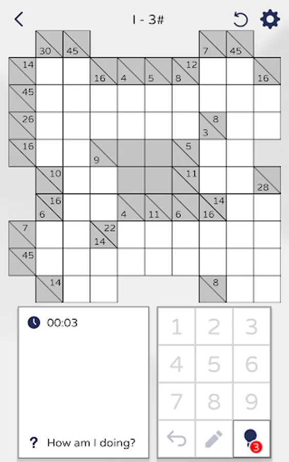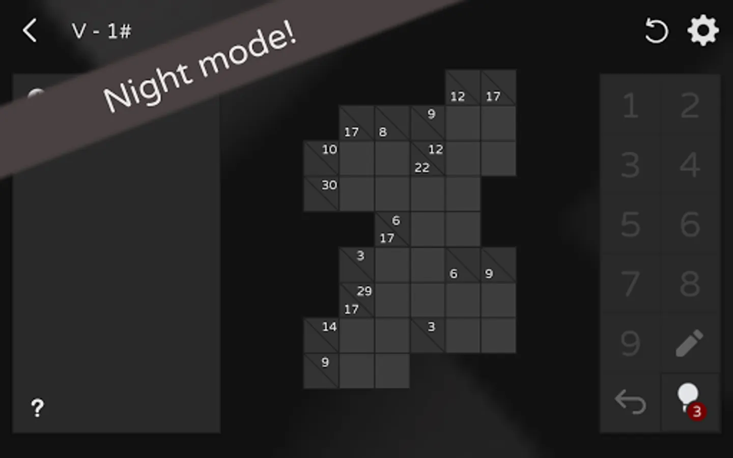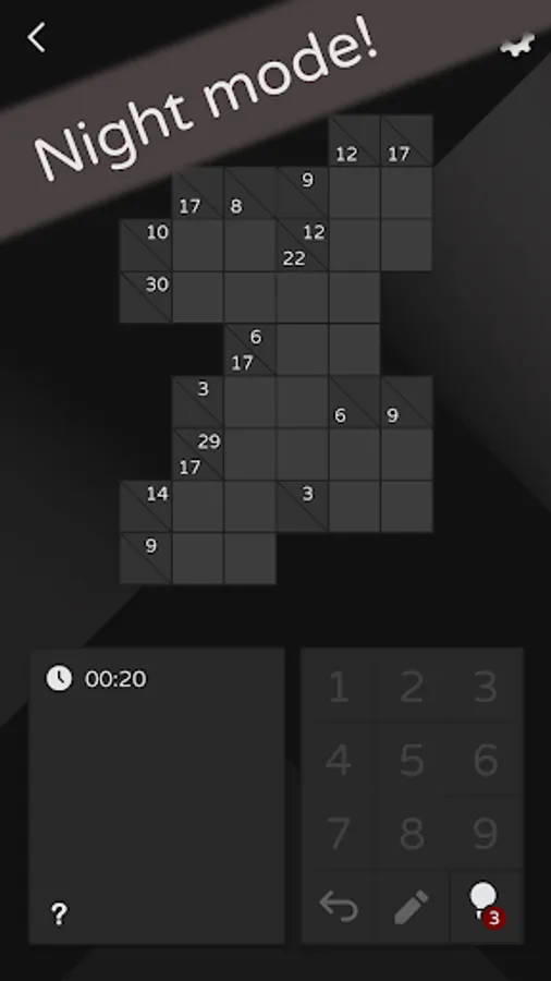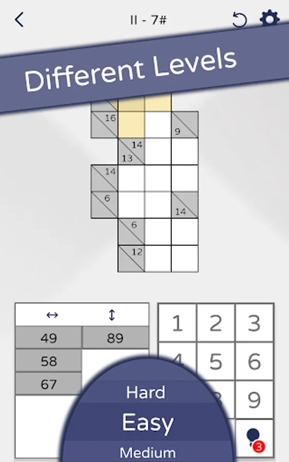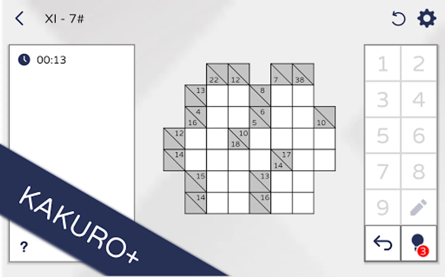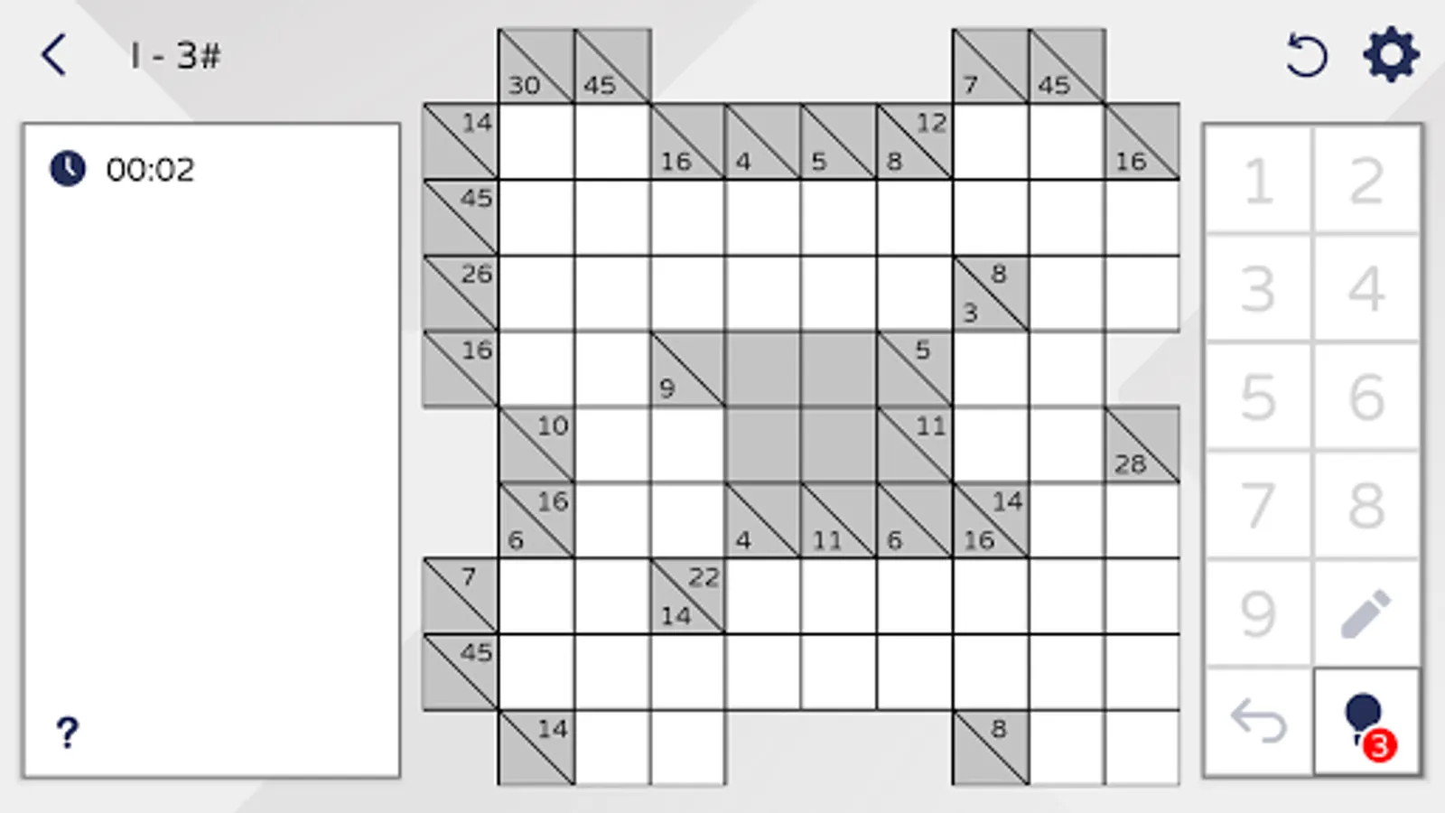 • The sum of numbers in each row or column is equal to the hint to the left or above