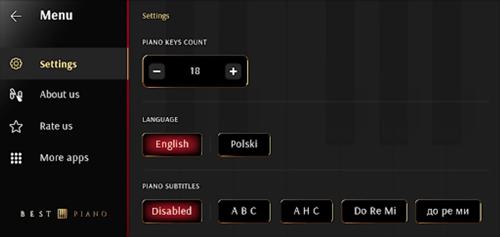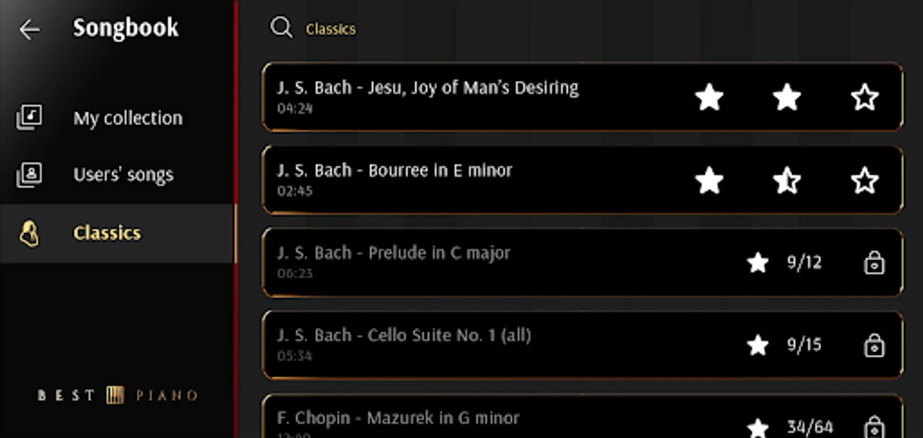 Do you want to learn the piano? Now it's possible with Best Piano application. This music app is very simple to use. You can choose from 42 different songs!