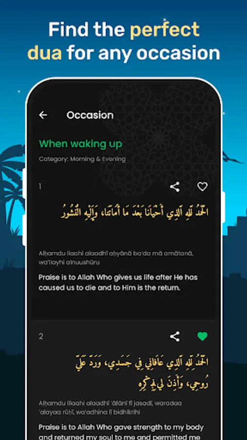 The app is designed to be user-friendly and functional for Muslims of all ages and backgrounds. It's lightweight and won't slow down your phone, and it's available in English and Arabic language versions for ease of use no matter where you’re from. The beautiful and modern design is continuously updated with new features and functions, ensuring that you always have the best possible experience.