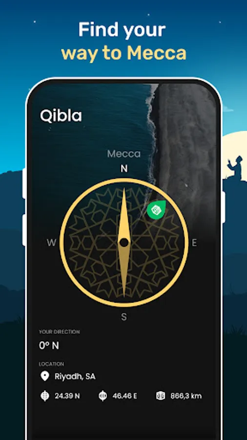 Find your way to Mecca with our app, designed with Muslims in mind and tailored to their needs. Enjoy features such as Salat, Qibla, Tasbih, Shahada, 99 names of Allah, Duas, Quran, greetings, videos, and more during Ramadan and every day!