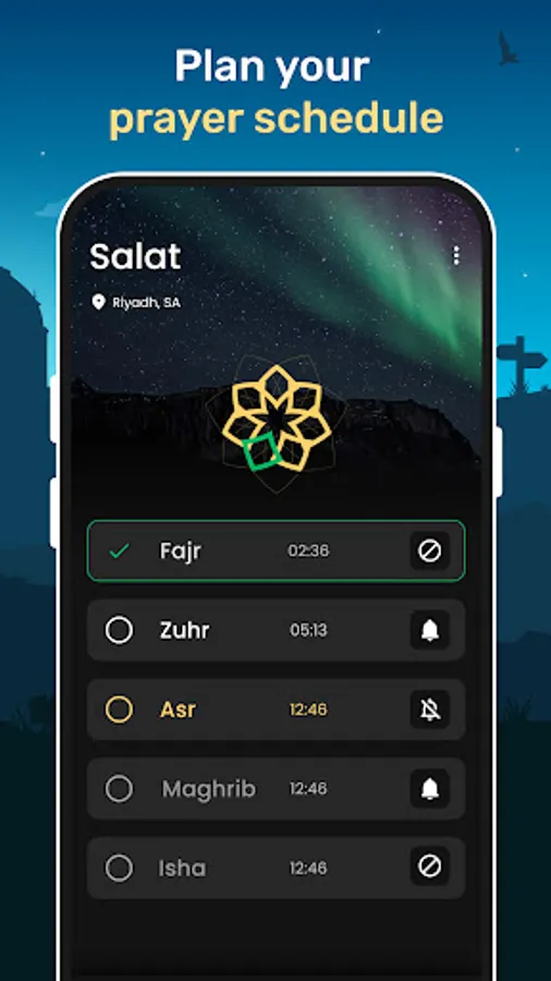 - Receive calls to the upcoming prayers by setting reminder notifications (Athan)
