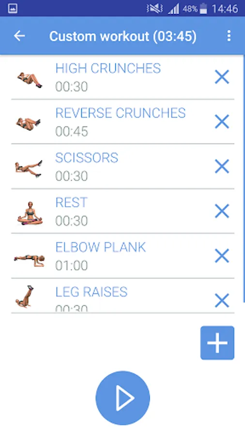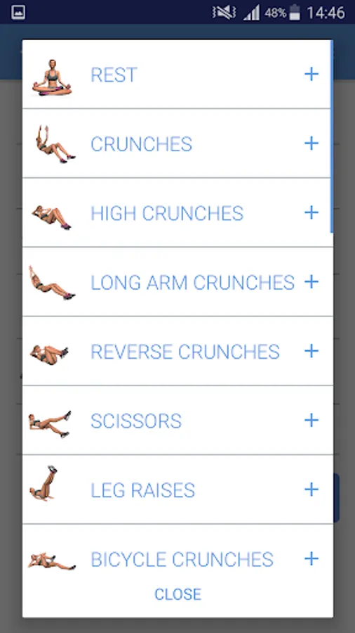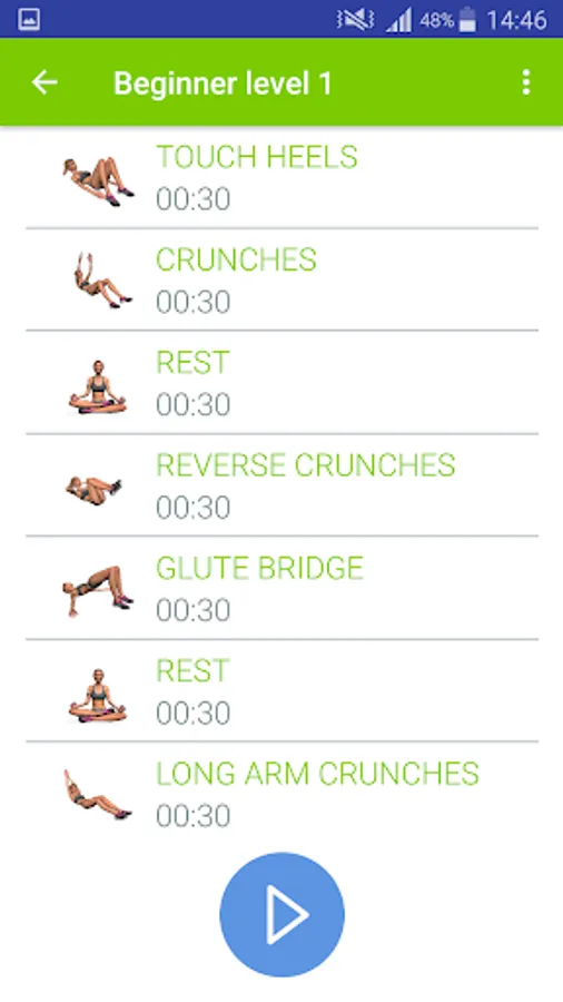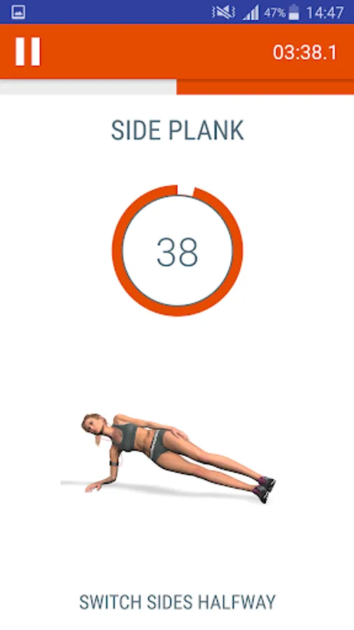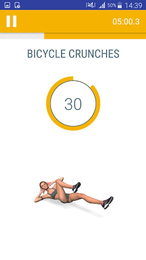 There are many exercises included in the workout: mountain climber, bicycle crunch, touch heels, plank, sitting twist, etc. These exercises are recommended for fully training your abdominal and back muscles. Do the exercises properly, it’s important for your health. You can modify and correct your motions according to list of exercises in our app.