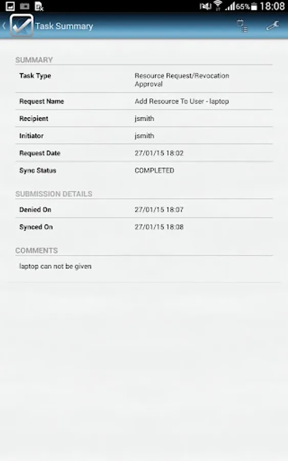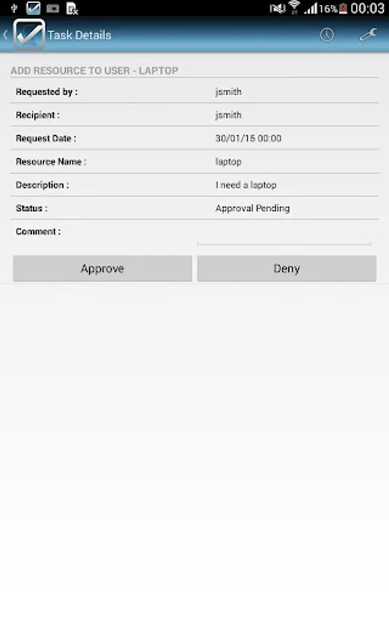 As a native Android App, the Approvals app connects with the NetIQ Identity Manager system to retrieve and display open tasks in an intuitive checklist format.