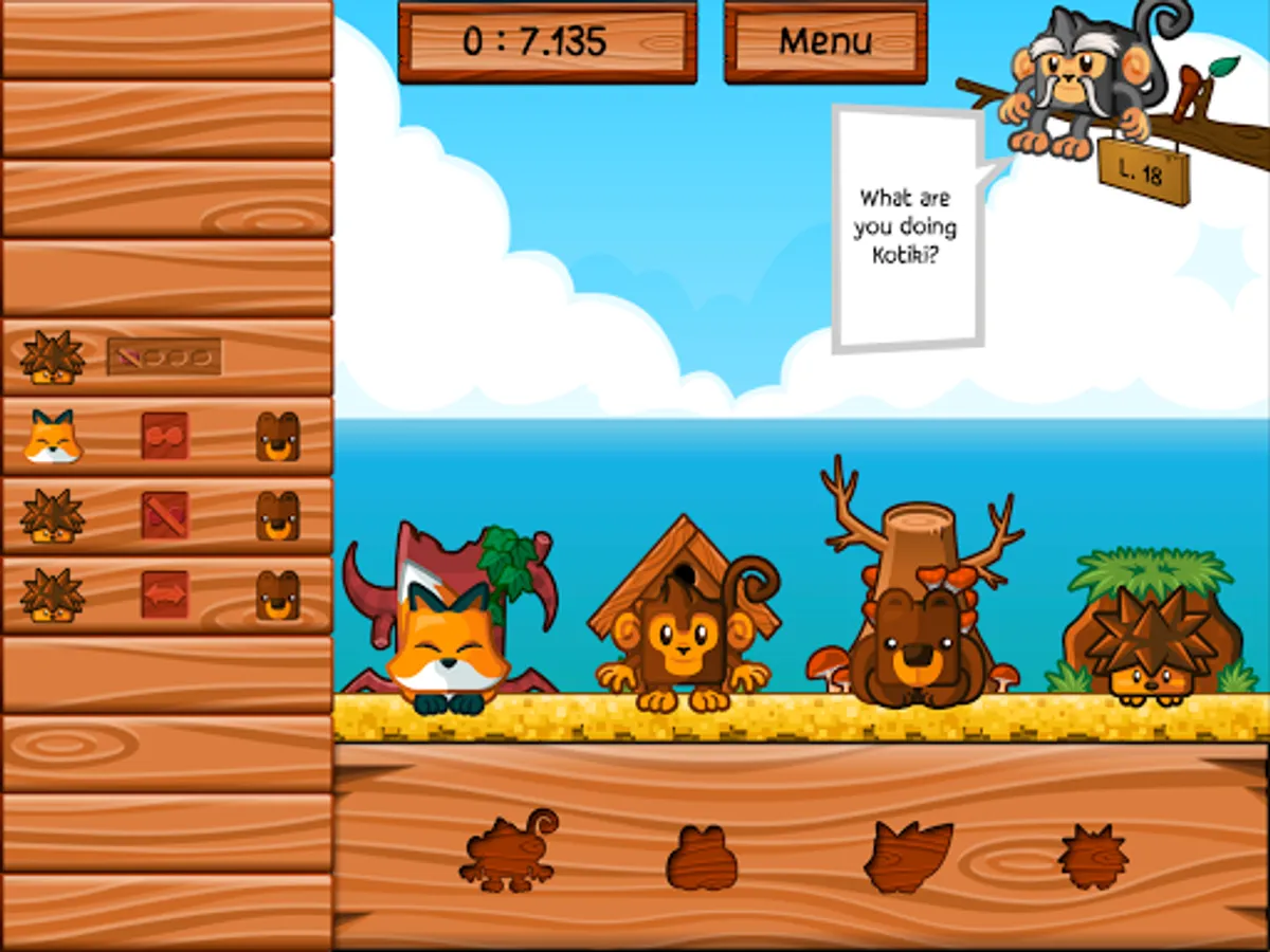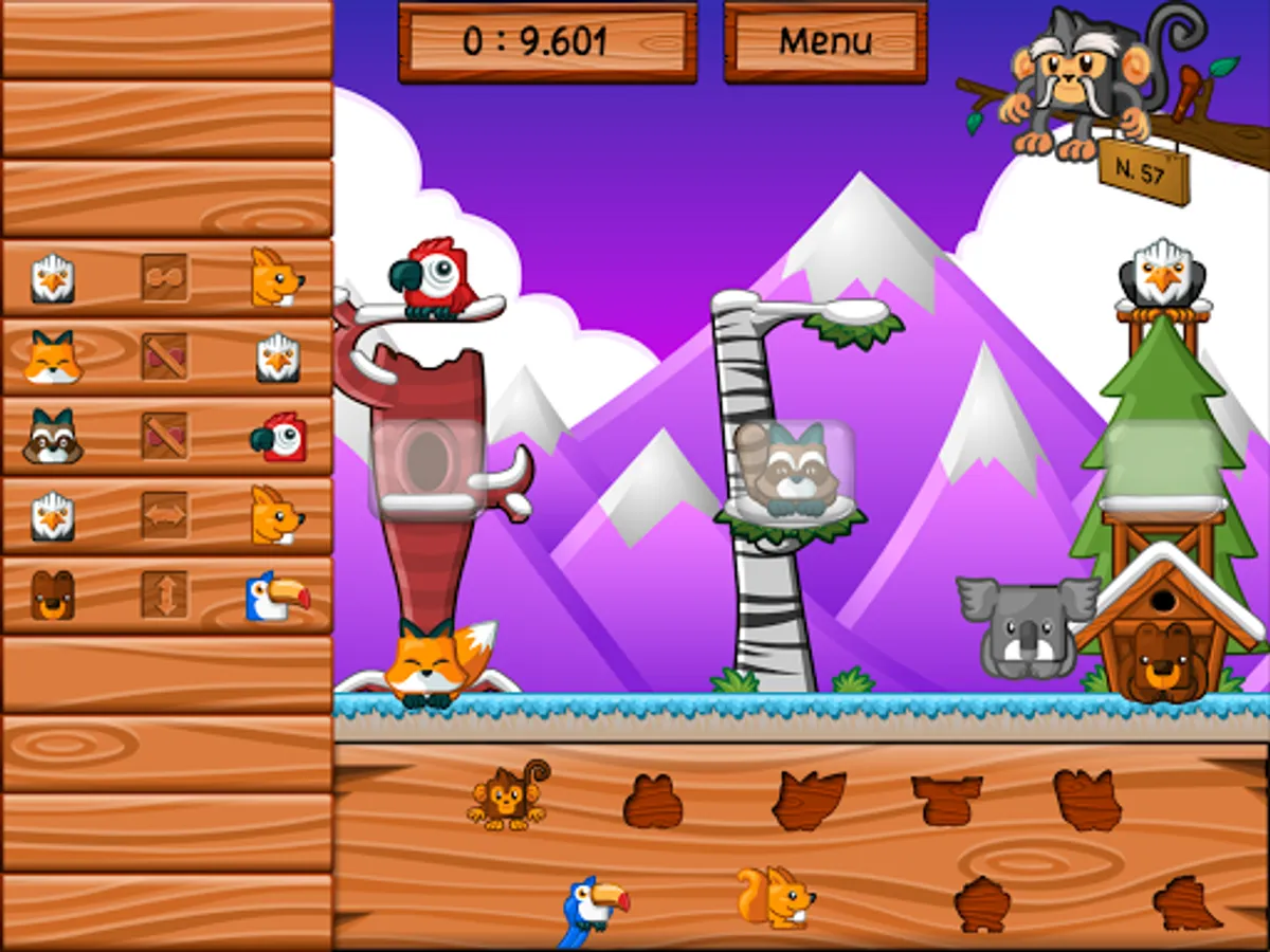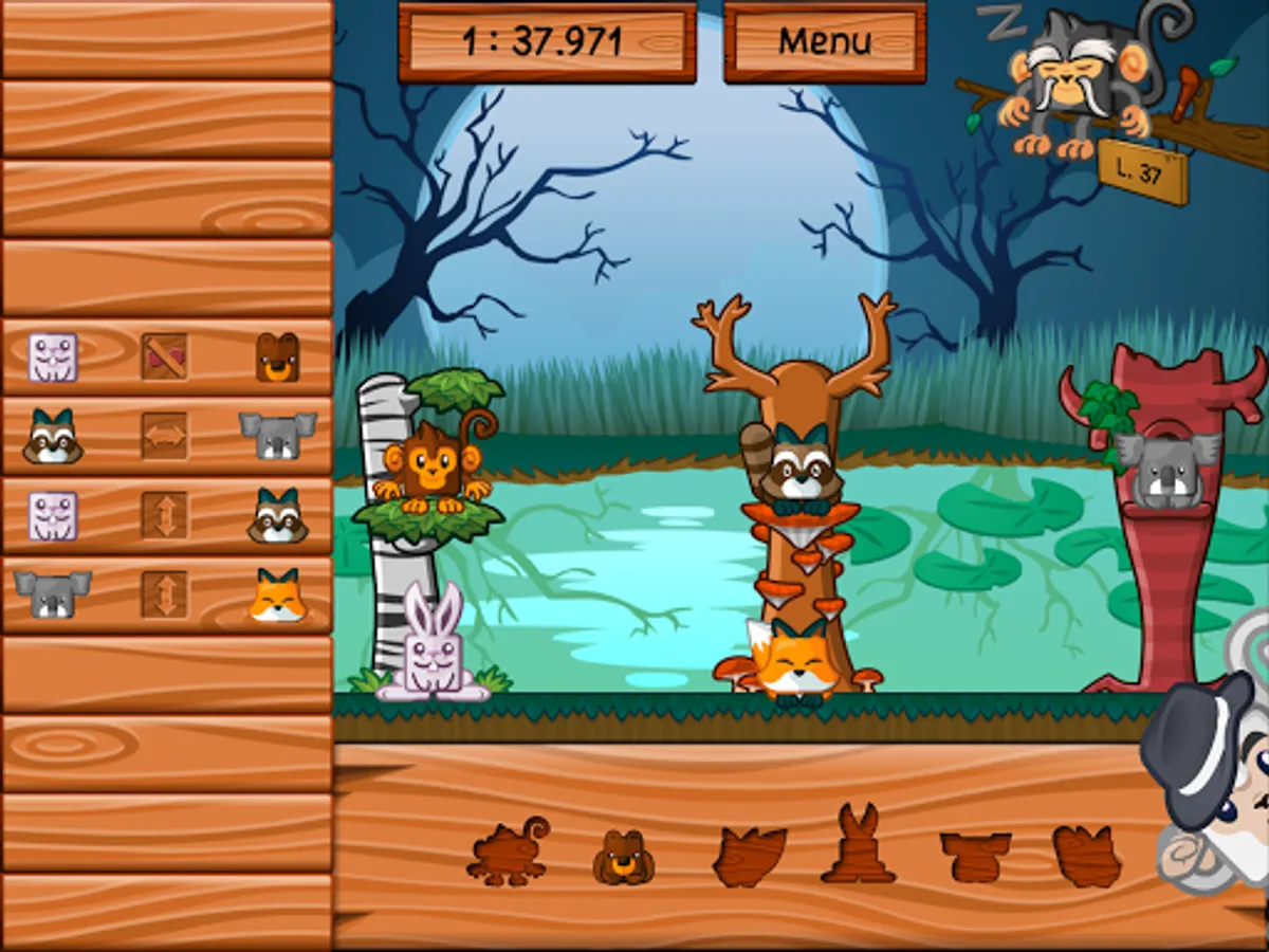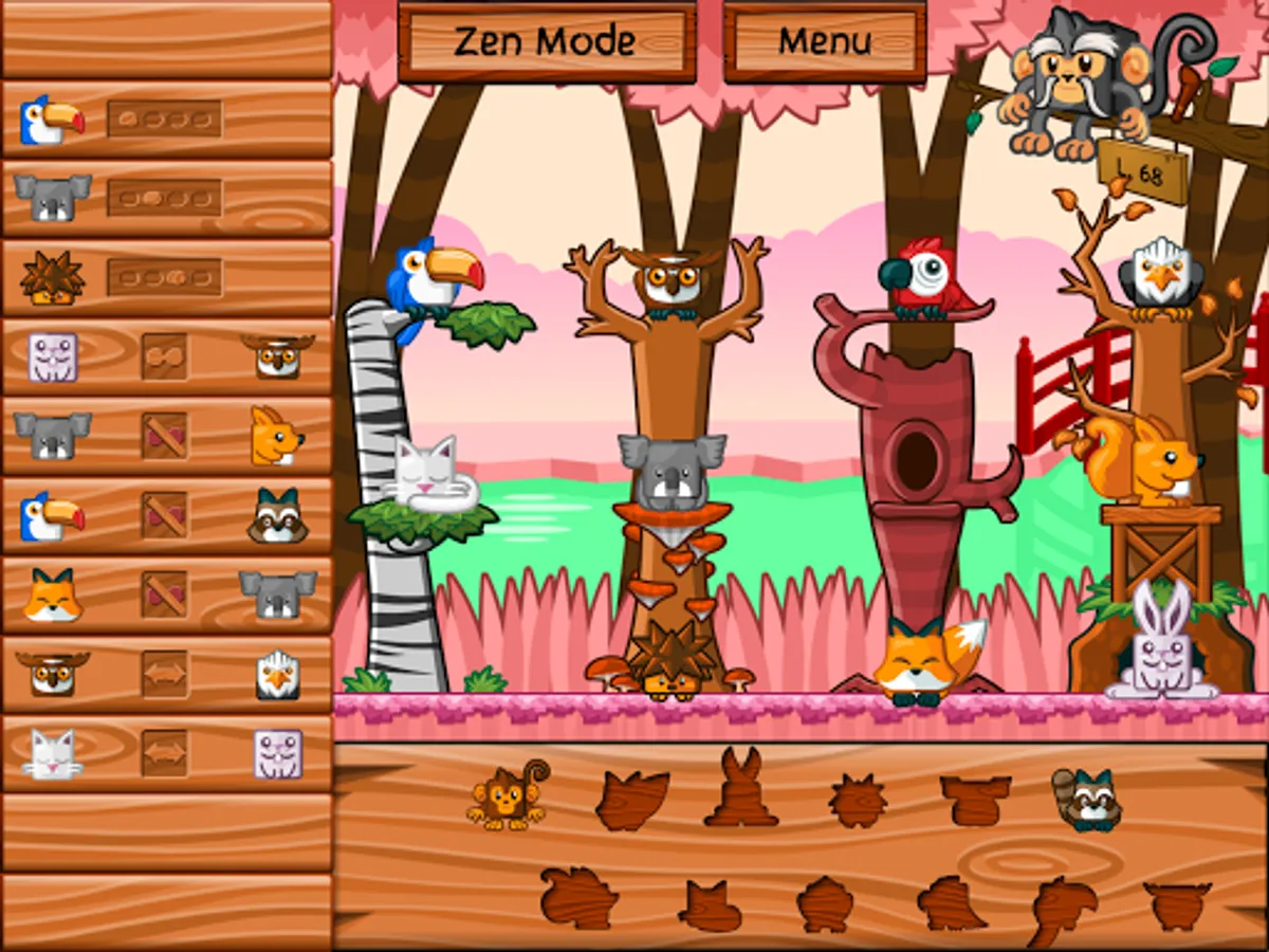 The night falls on the jungle, the animals must find their home. The master of the forest has inscribed the place of each on a board in the form of symbols. Tonight, the bear should not be next to the fox while it is placed to the left of the hedgehog. Help them find the right place to sleep. As for little monkey Kotiki, never in a hurry to go to bed, he will be satisfied with the nest that others have left him.