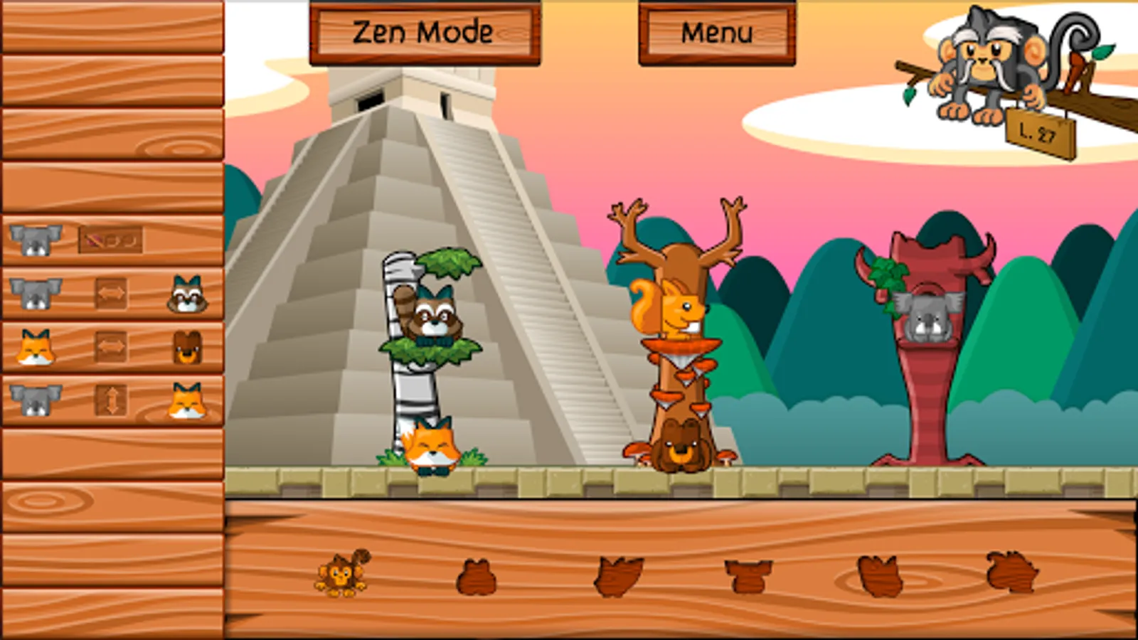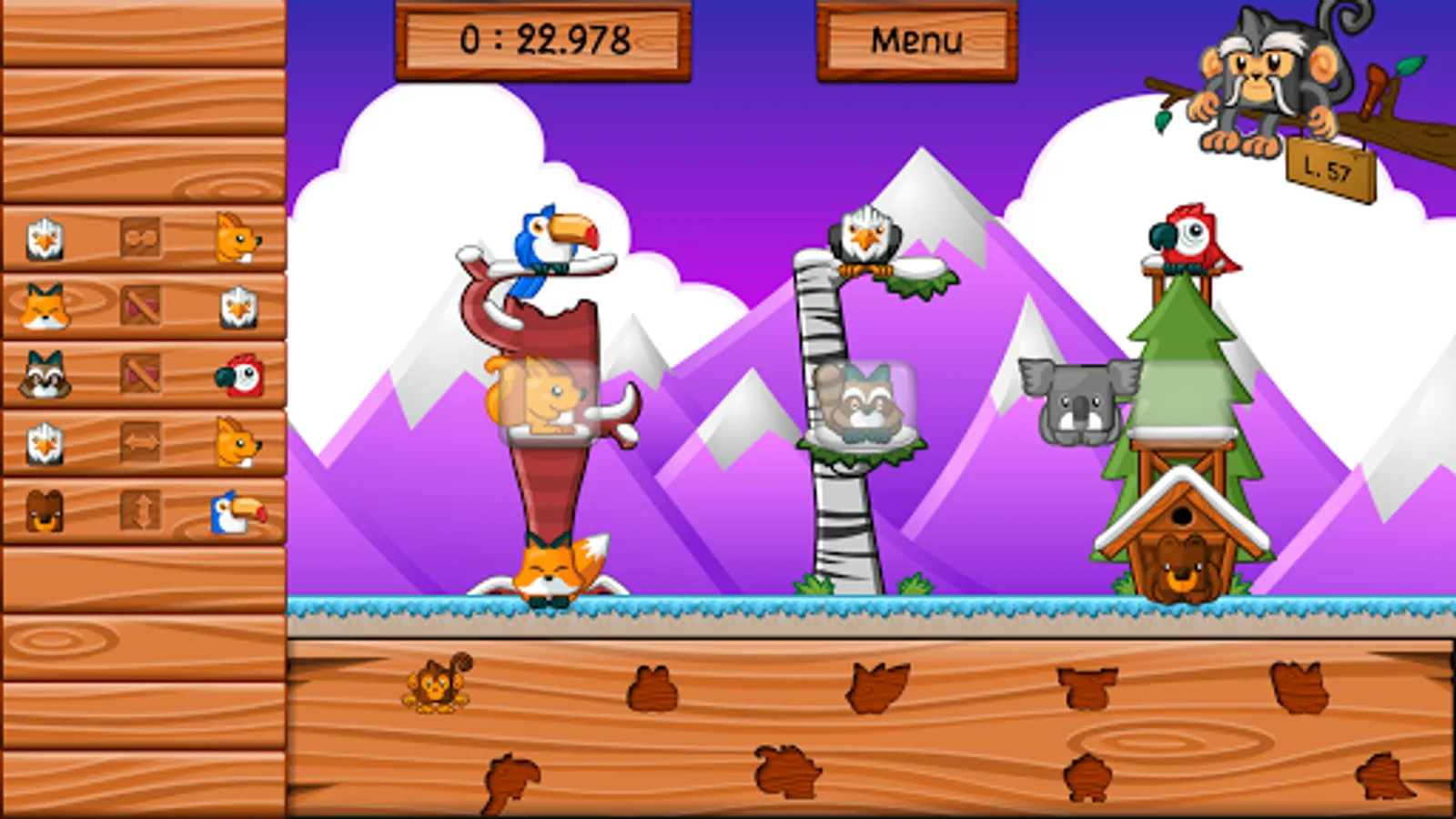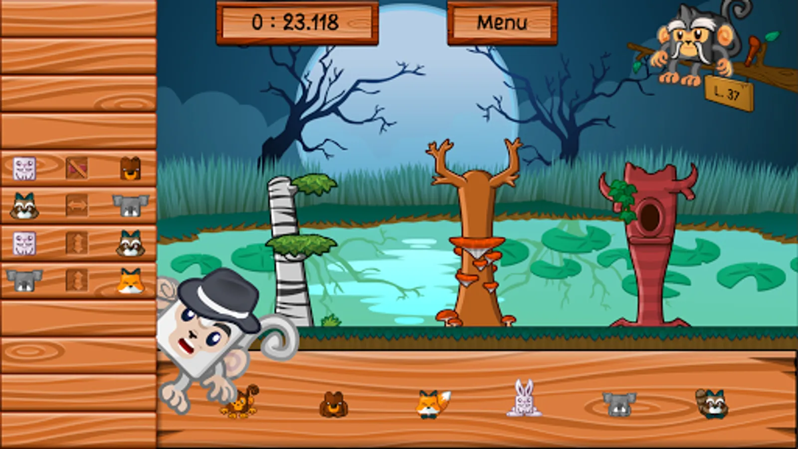 The night falls on the jungle, the animals must find their home. The master of the forest has inscribed the place of each on a board in the form of symbols. Tonight, the bear should not be next to the fox while it is placed to the left of the hedgehog. Help them find the right place to sleep. As for little monkey Kotiki, never in a hurry to go to bed, he will be satisfied with the nest that others have left him.