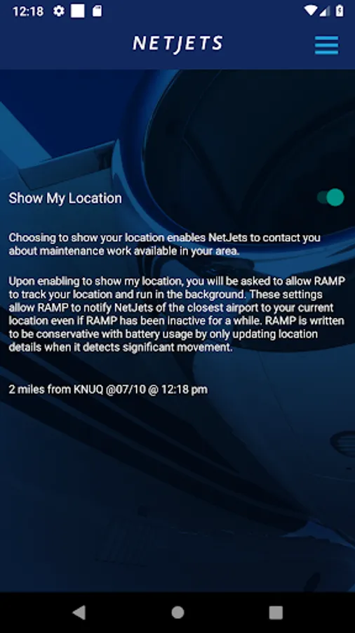 The NetJets Remote Access Maintenance Portal (RAMP) allows our partners, at their request, to indicate their location so that they are able to be contacted for available maintenance work in the area.