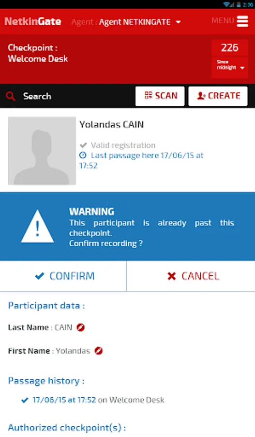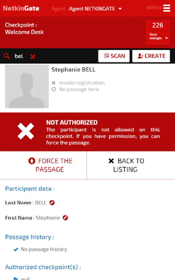 Often associated with a platform on-line registration, The NetkinGate application allows you to control the arrival on site of the participants at an event.