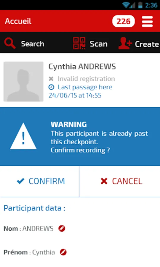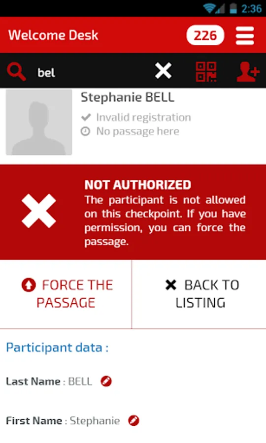 This control is effected either by scanning the QR code, or by instant search on the name and surname in the case of absence of badge.