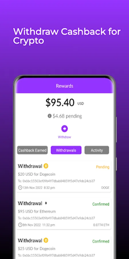 - Withdraw your earned cashback for multiple cryptocurrencies including Bitcoin and Ethereum