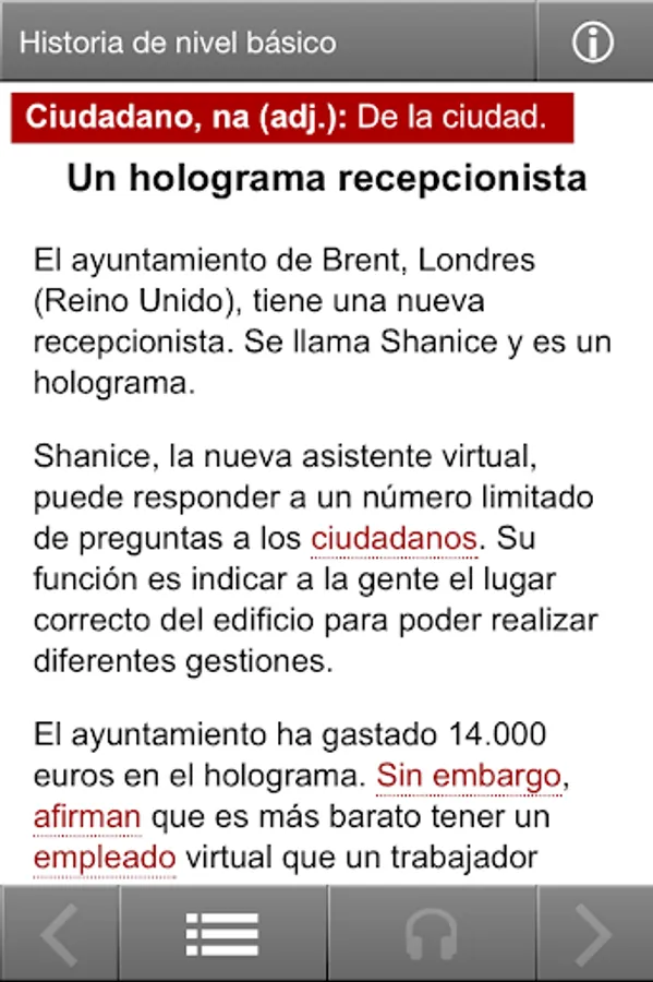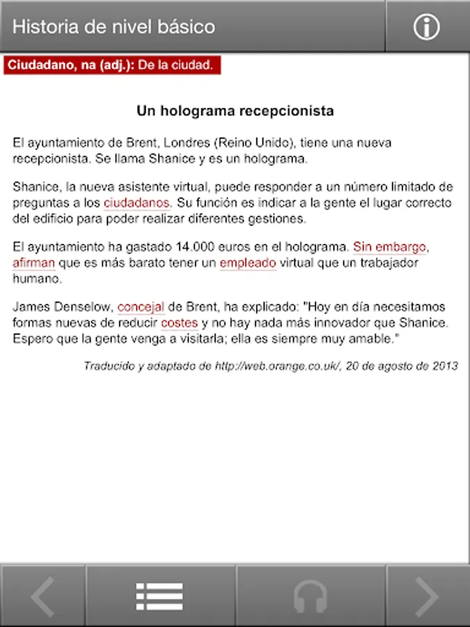 Interactive Spanish is a free monthly app designed for you to practise and improve your Spanish. Each of the monthly editions contains interactive exercises, a current news story and a recorded discussion, at three levels – Basic, Intermediate and Advanced. Features include: