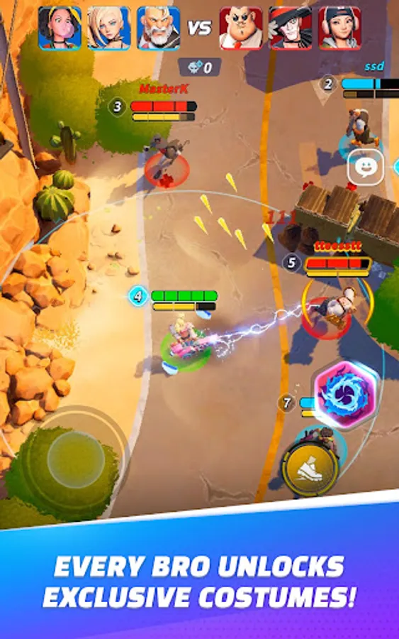 Bros will randomly acquire Capsule Abilities during battle. Adapt quickly by using these Capsule Abilities, which allow Bros to strategically select and build Power-Up configurations on the path to victory. To become the top Bro, you must adopt diverse tactics to outwit and defeat opponents.