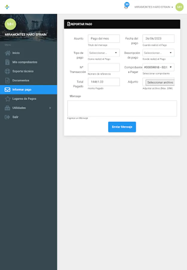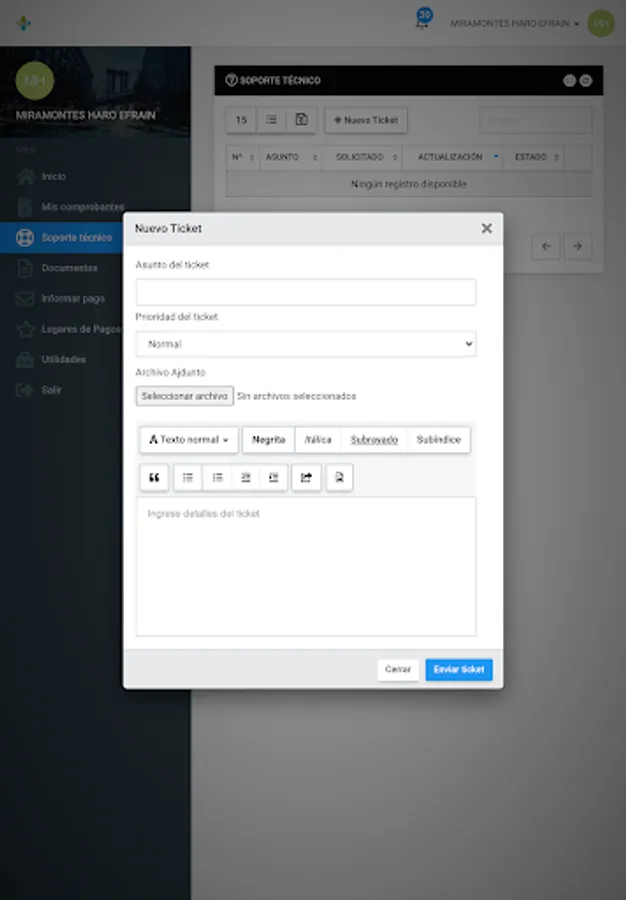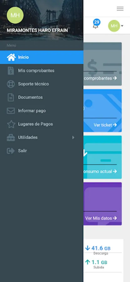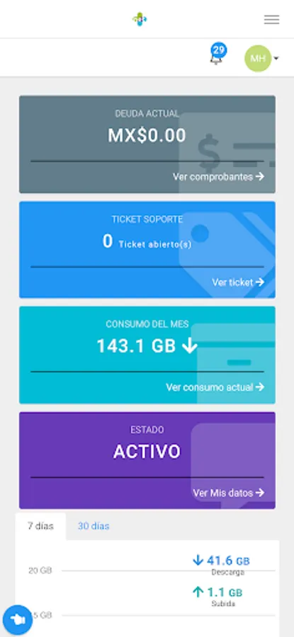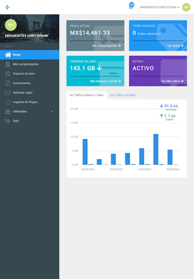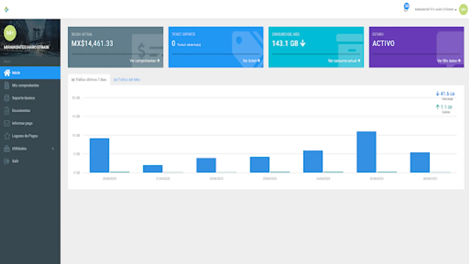 Here you can review your payment receipts, download your invoices, report network problems, see your internet consumption, open a support ticket, among other functions.