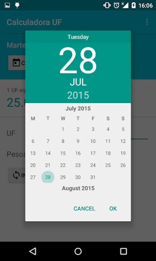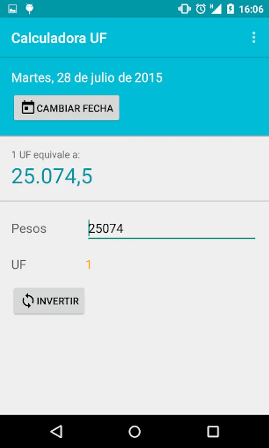 Valor de la UF actualizado con calculadora para convertir entre Pesos y Unidad de Fomento y viceversa.
