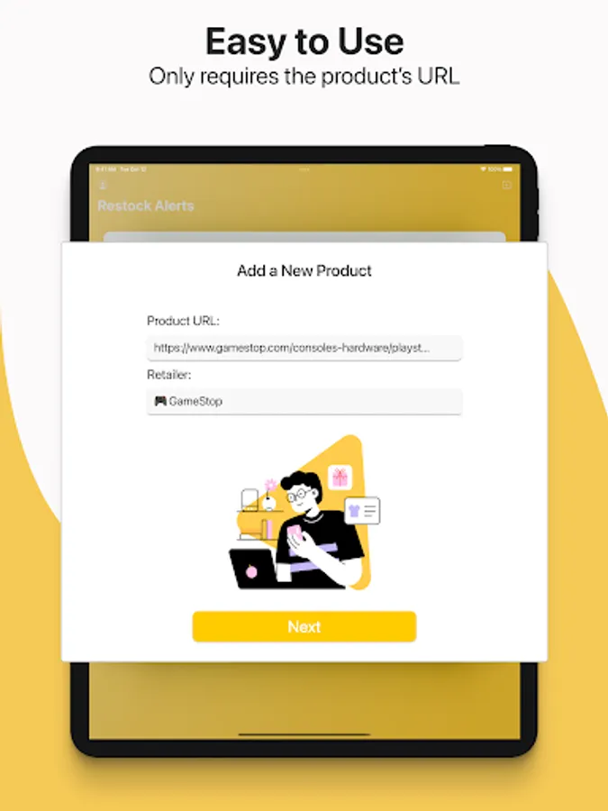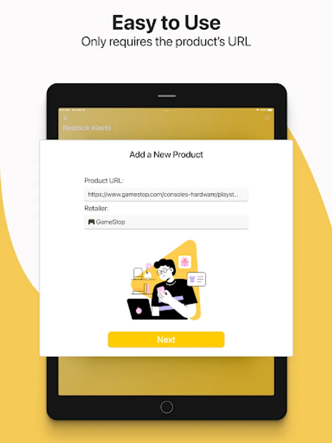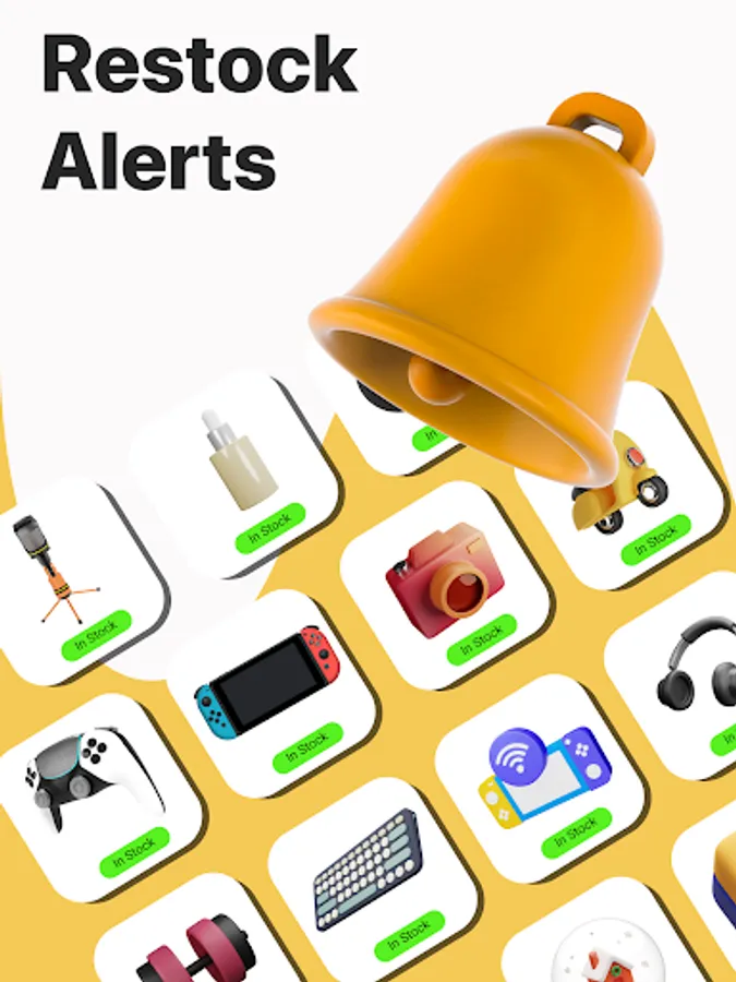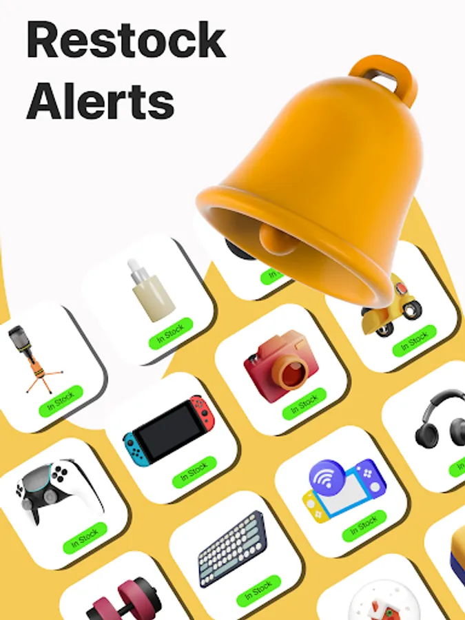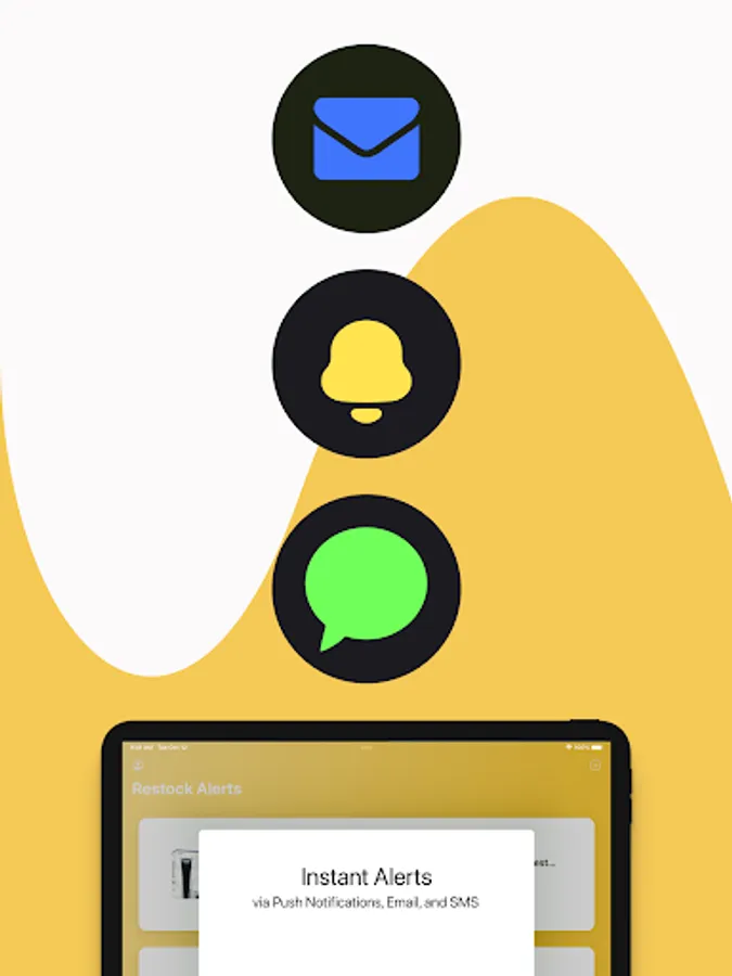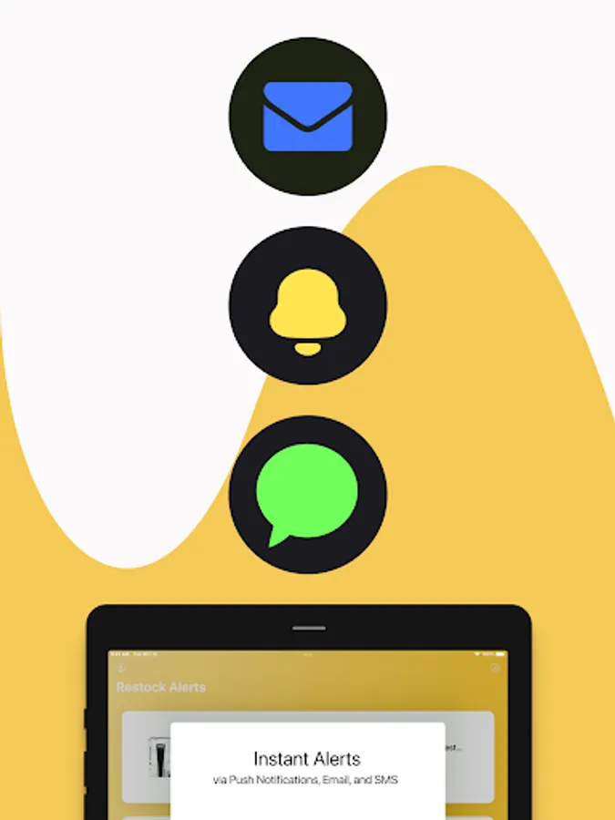 Restock Alerts only needs the web page's URL of the product you want to monitor. Once it detects the inventory information has changed to 'In Stock,' you will be instantly notified by push notifications, Email, and SMS.