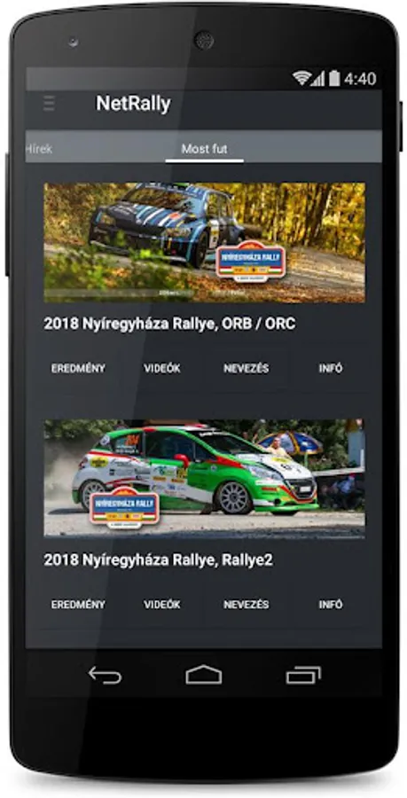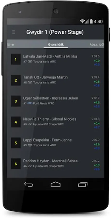 Live Rally results on your mobile from WRC, ERC and hungarian races.