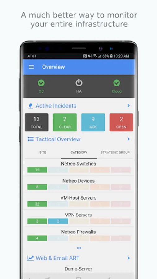 Netreo’s OmniCenter MobileTM is an application connector that seamlessly provides anytime, anywhere access to the current status of your entire Enterprise IT environment. It works in conjunction with an OmniCenter® appliance deployed in your network or the cloud.