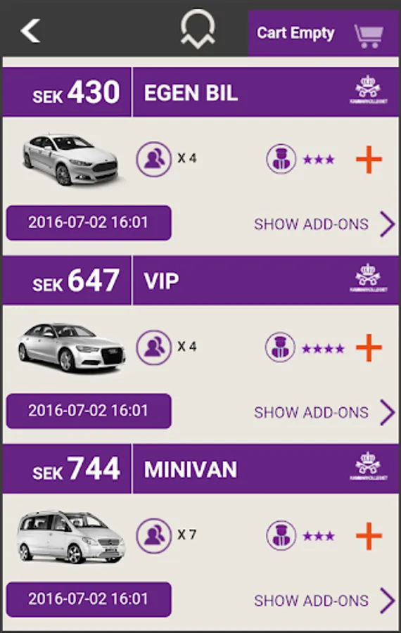These offer a hassle free and comfortable travel experience along with cohesive management of expense administration during travel. These products can be booked through travel agency, on-line booking application or through MYCAB Call Centre.