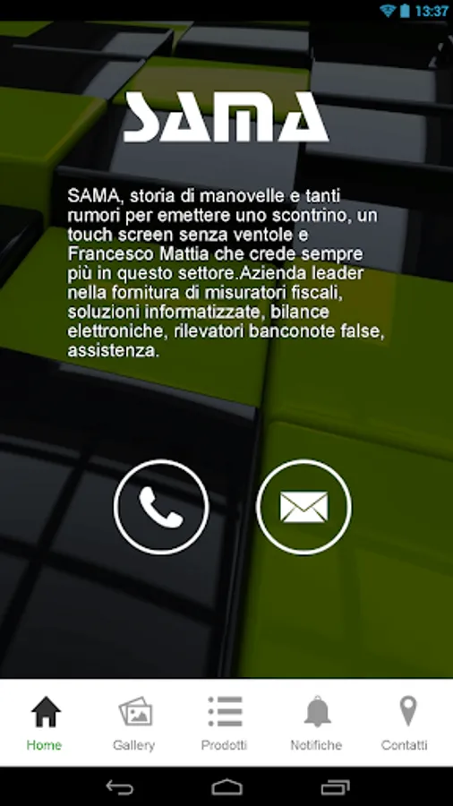 Sama Mattia Francesco, is proud to present its new mobile application with which you will always have on smartphones reach all information about products and services.